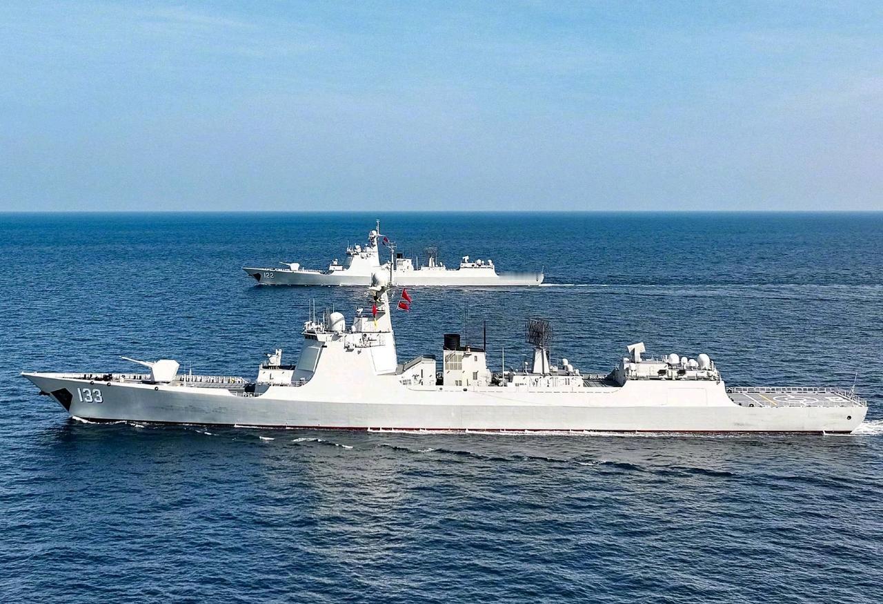 图一是画家何岸于1979年创作的油画《西沙之晨》,现藏于中国美术馆。画面以南海为背景,前景是满载而归的渔民,背景是舷号165的051型“湛江”舰。 这幅画将军民守护海疆的主题融入日常劳动场景,具很高艺术价值与时代印记,类似的作品还有不少。现在的海军题材作品由于高清相机的出现,视觉冲击力强烈。 总体感觉老画的朦胧光影和笔触肌理,赋予画面历史厚重感;现代作品虽清晰精准,却因过度依赖技术,艺术创作的独特性难以彰显。