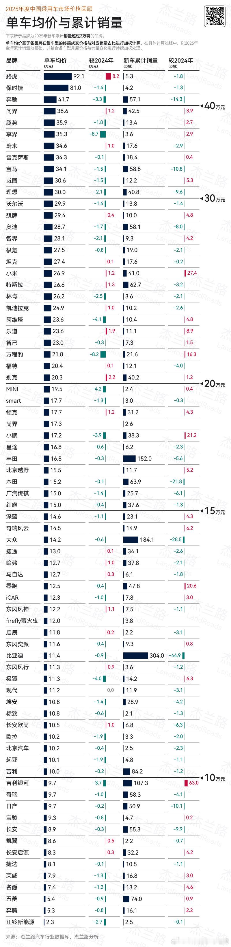 25年许多品牌都在降价保量,问界 则凭借着38.6万的成交均价和42万+的销量实现了“量价双升”