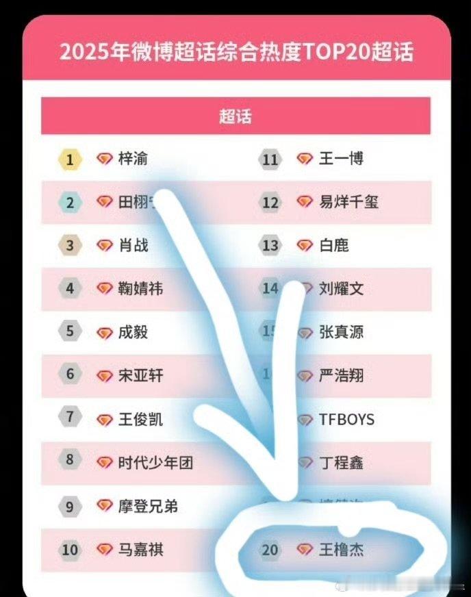 王橹杰2025超话综合热度top20王橹杰2025超话综合热度四代第一王橹杰20
