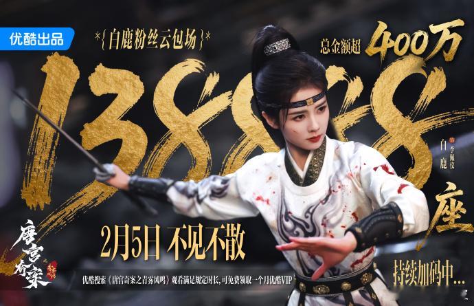 白鹿粉丝包场唐宫奇案白鹿粉丝给《唐宫奇案》准备了138888座云包场,总金额超400万!李佩仪2月5日不见不散!2025微博之夜爆款创作大赛