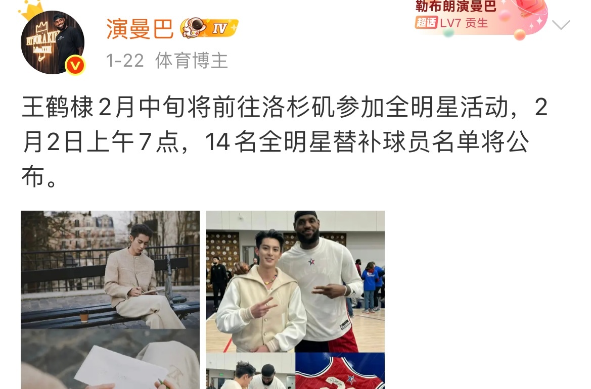 王鹤棣 NBA官方发布王鹤棣连续第三年出战 NBA 全明星名人赛!你看我的消息还是算OK。祝贺王鹤棣,又要见老詹了!👑王鹤棣三战NBA全明星