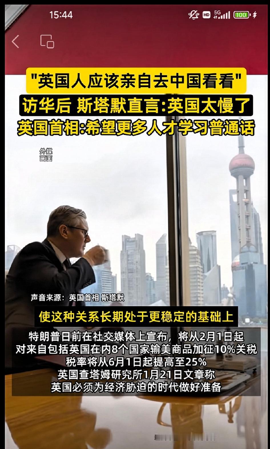 访华后,斯塔默直言:英国太慢了! 英国人应该亲自去中国看看,忽视中国的8年,英国一事无成。 我和一个由英国顶级企业组成的代表团一起旅行,这个英国代表团展现出积极进取的精神,愿意把握中国所带来的机遇。 随着双边关系的加强,企业将希望有更多人才学习中文。我们也希望两国的关系长期处于更稳定的基础之上。 编者按:这的确是英国的破冰之旅。过去的8年,英国三任首相未曾访华。