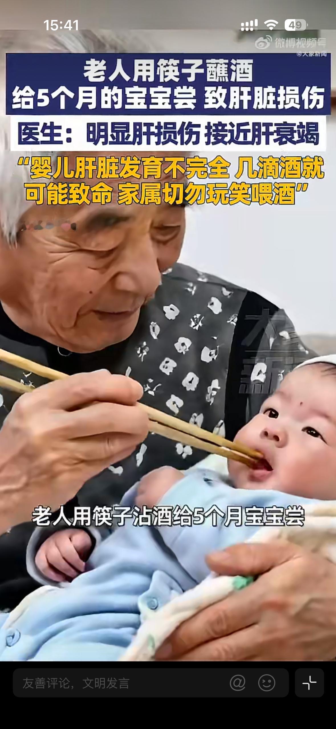 春节聚会将至,这起事件给所有家长敲醒警钟!面对长辈“蘸酒逗娃”的行为,别抹不开情面,一定要坚定说不!孩子的健康没有试错空间,科学守护,才是真正的爱。老人筷子蘸酒喂5月龄宝宝致肝损伤