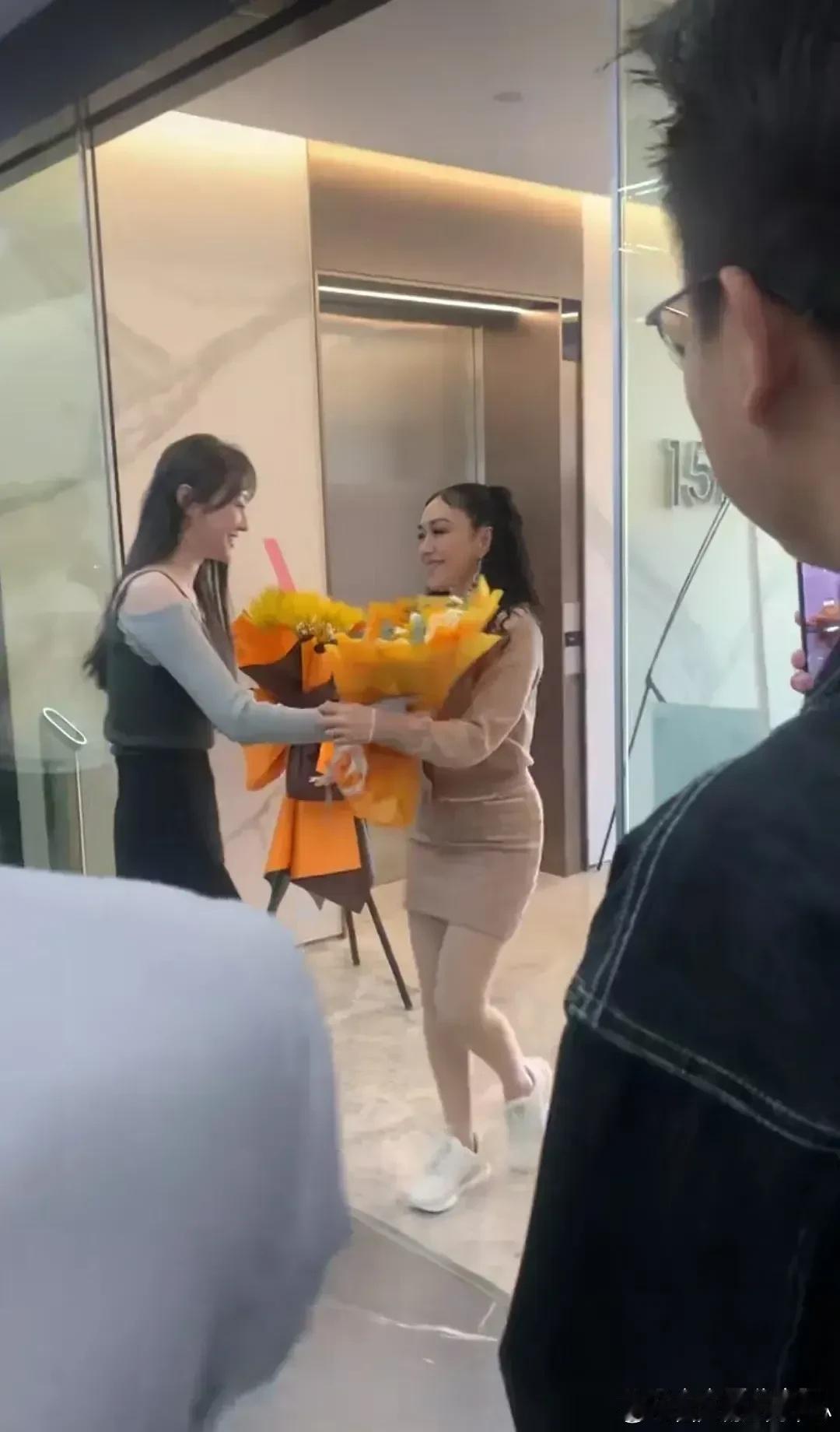 张天爱跟素人合影,胯真的好宽,大宅院似的