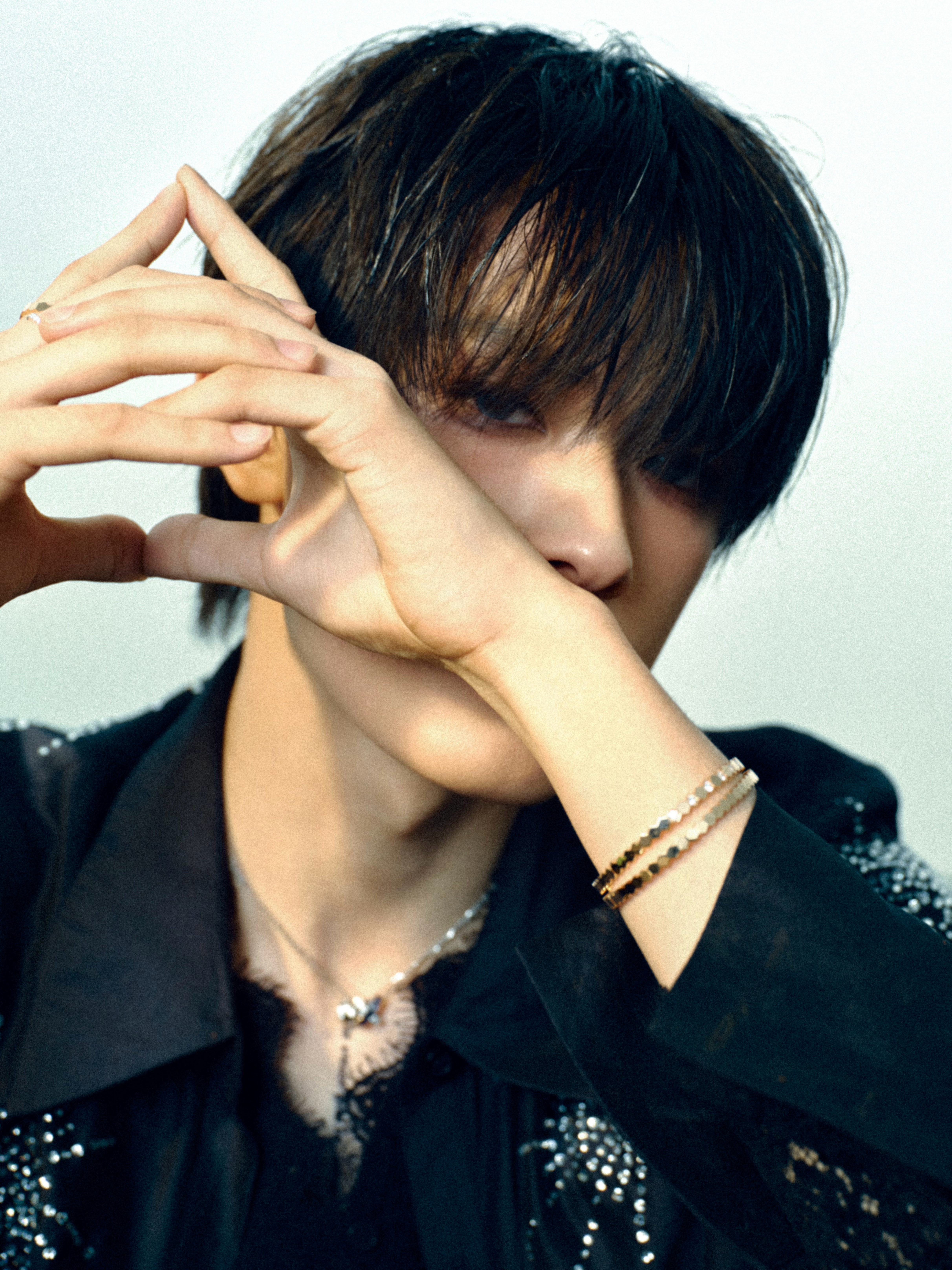 佩戴CHAUMET Bee de Chaumet与Liens缘系·一生系列珠宝,出镜十九岁生日特辑。六边形蜂巢叠映锐利光影,标志性“X”连结符号静诉羁绊。蕾丝与钻饰勾勒出深邃的黑调氛围,湿发垂下,眸光沉静——于神秘与璀璨的交界,星光沉淀于眼底,锋芒初显于眉宇~✨