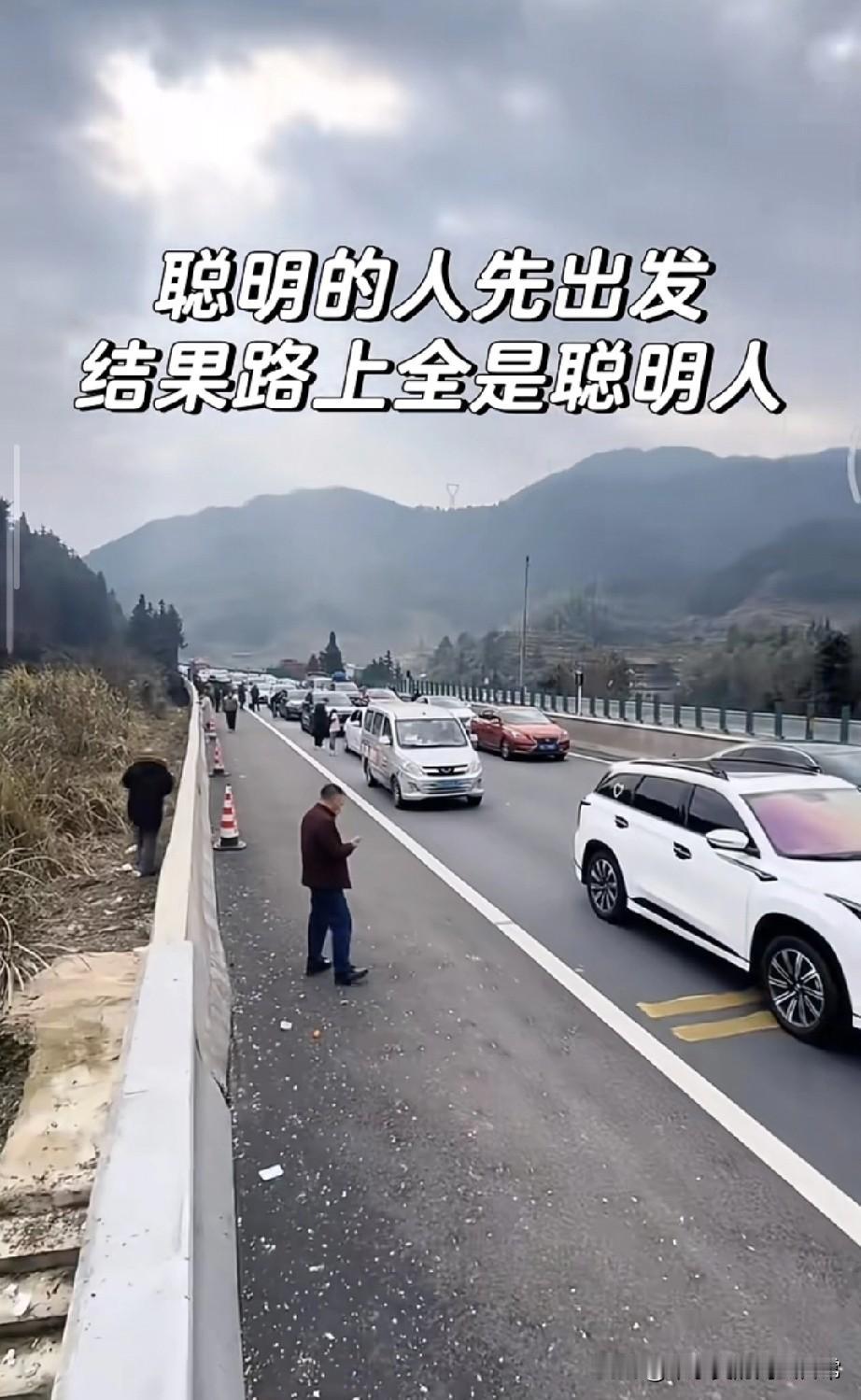 高速上全是“聪明人” 我堵到开始数山上的树 今早6点就爬起来出发,想着错峰回家肯定一路畅通,结果刚进高速口就被上了一课——眼前的车龙能排到隧道口,全是跟我一样“聪明”的人! 车里的零食炫完了,手机电量也掉到20%,只能下车跟陌生老乡一起在路边晒太阳,有人甚至掏出了折叠凳开始唠家常。旁边大哥吐槽:“以为早走3小时能省3小时,现在看来是多堵3小时。” 这哪是回家路,明明是大型“聪明人团建现场”。奉劝还没出发的朋友,要么半夜12点走,要么干脆在家多待两天,别再跟我们一样当“大聪明”了! 你们都是啥时候出发的?评论区报个到,让我看看还有多少同款大冤种😂
