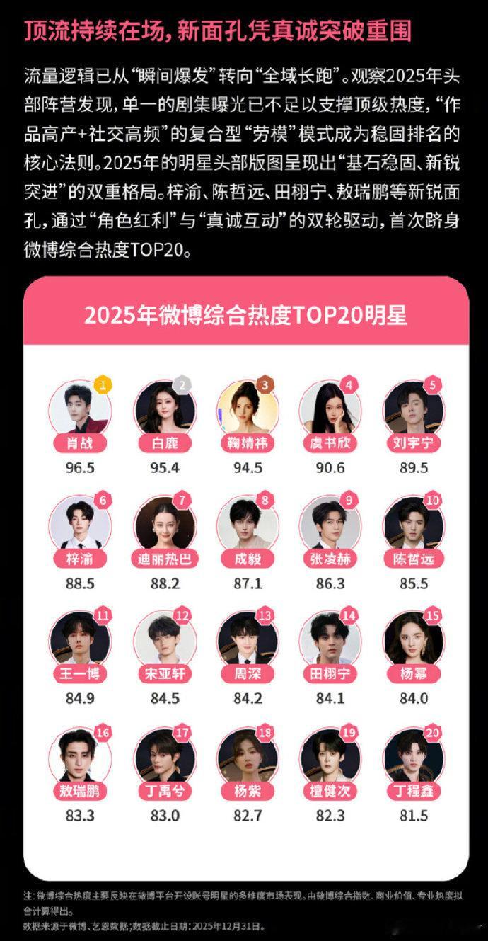 【肖战2025年微博综合热度TOP1】肖战 2025微博娱乐白皮书显示,荣获20