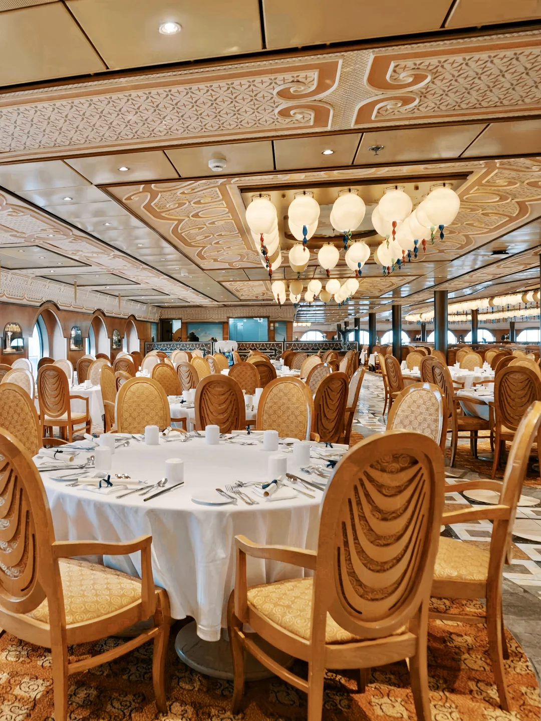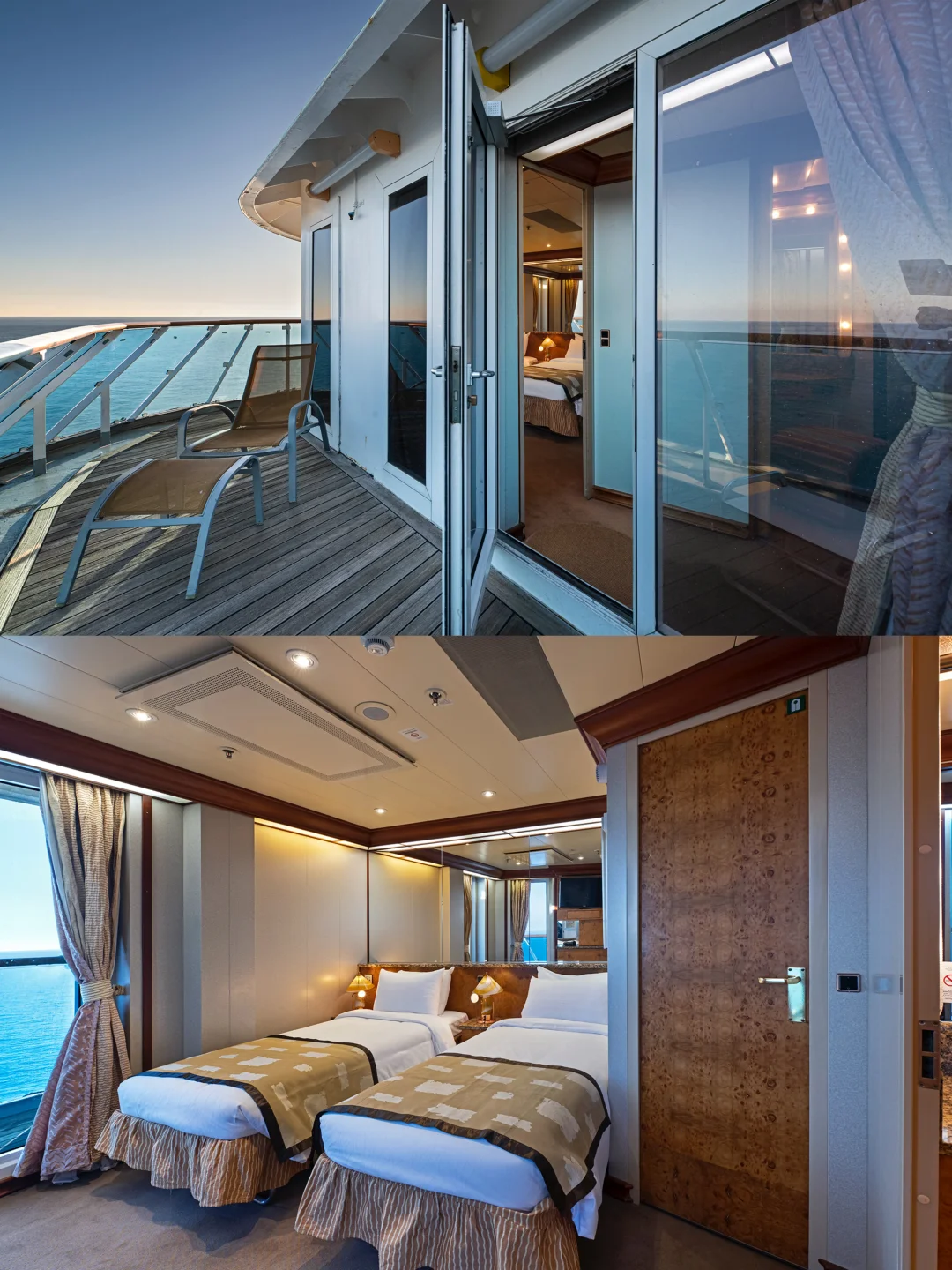 我看中的是全景阳台套房,空间大、风景好,住的舒服点😆一日N餐,中西日韩各种风味轮着来,不担心饿到挑食的娃了。早鸟优惠还超香——同舱3人,1人直接免船票‼️算下来人均比飞过去还便宜,血赚😆