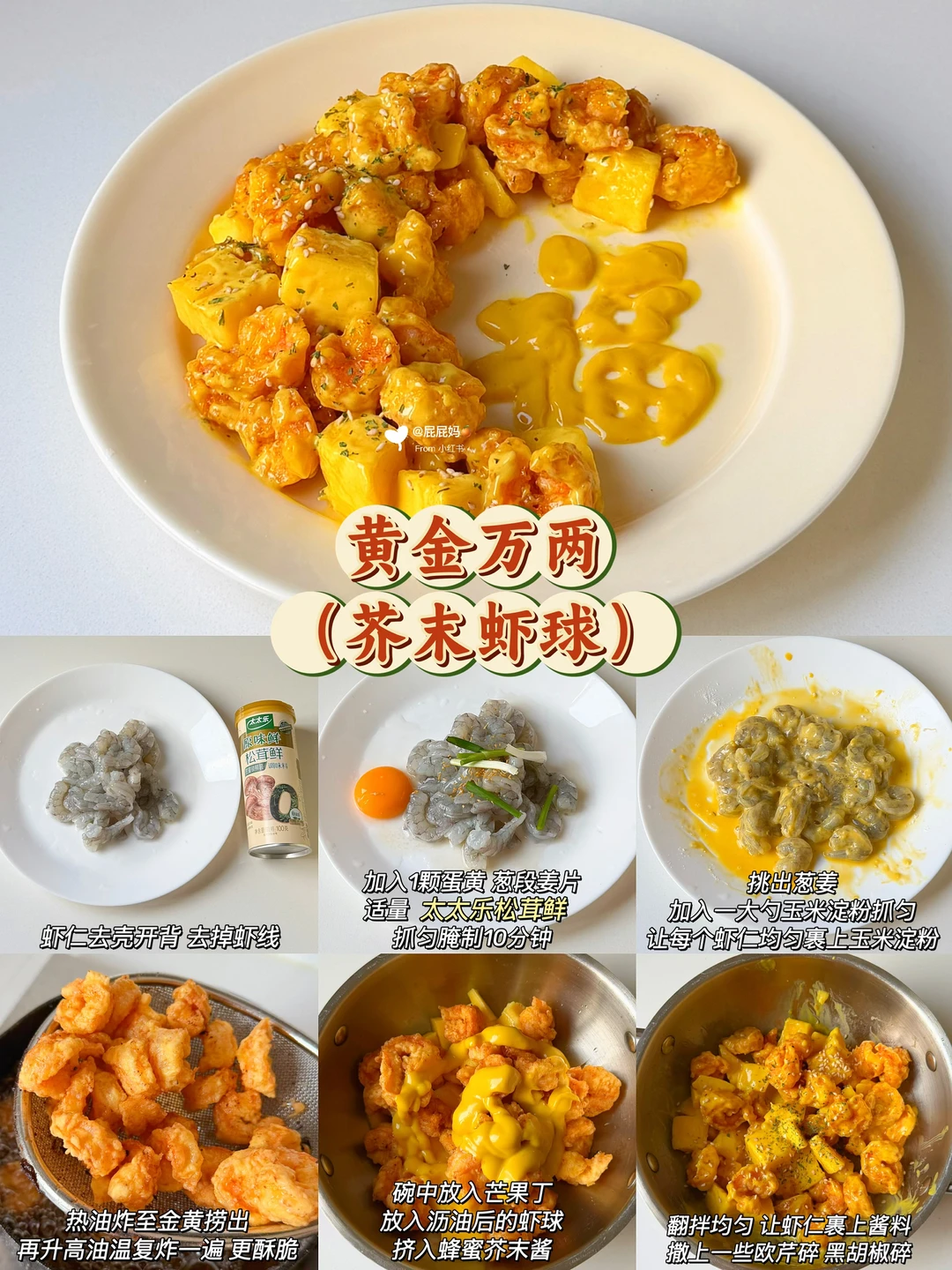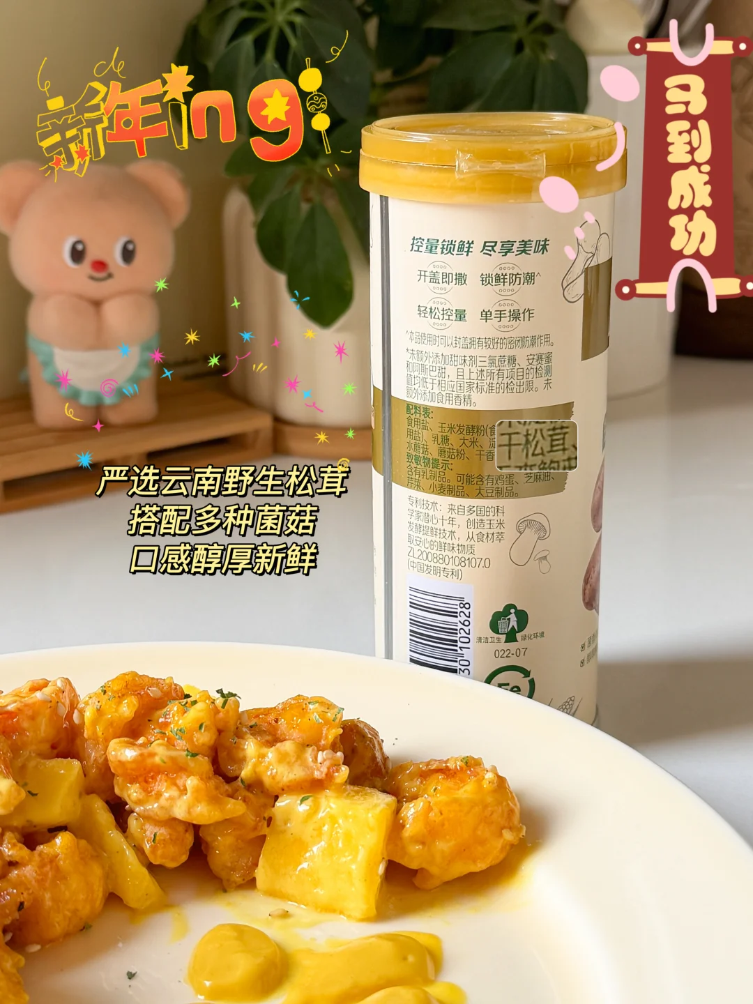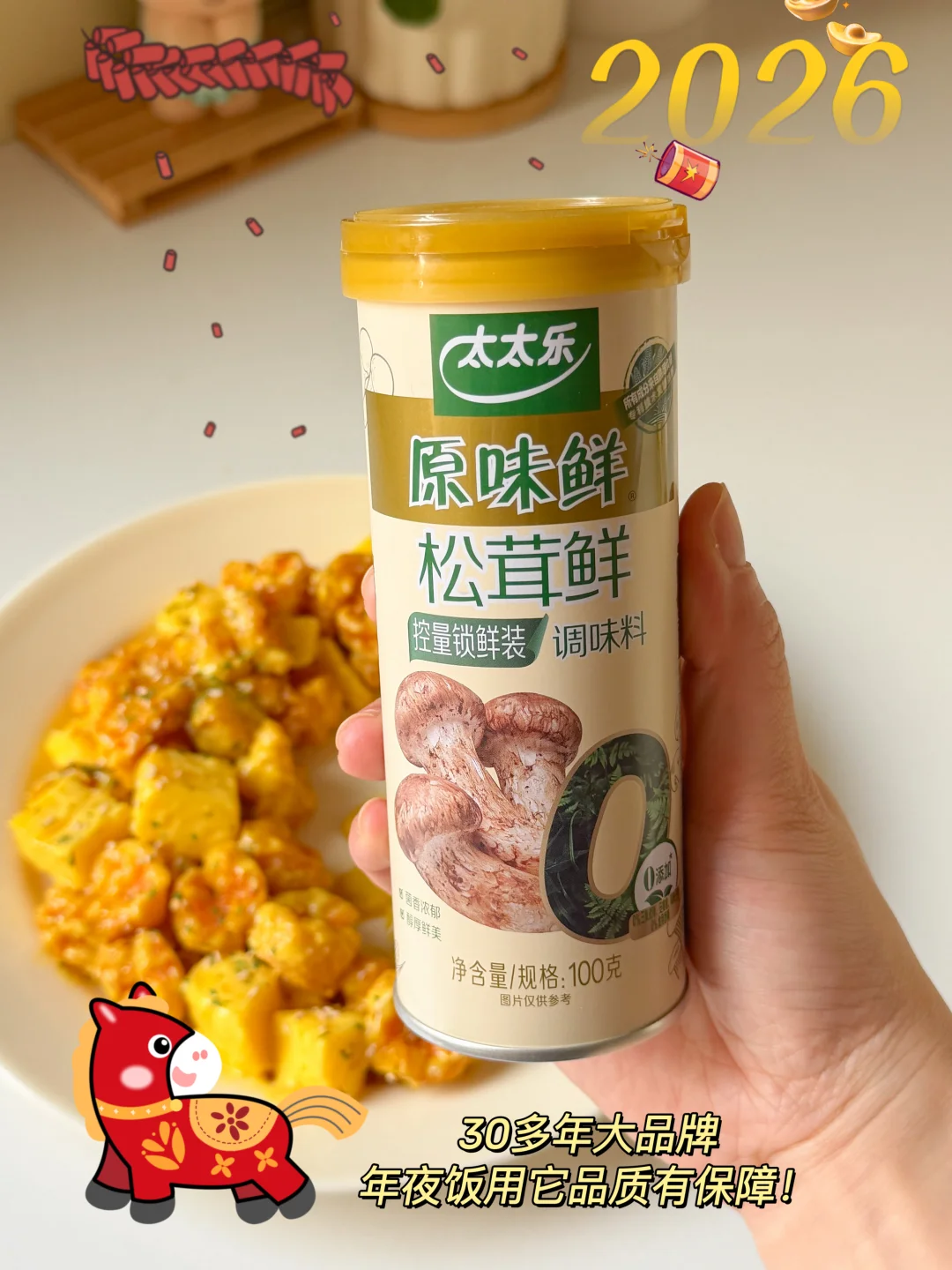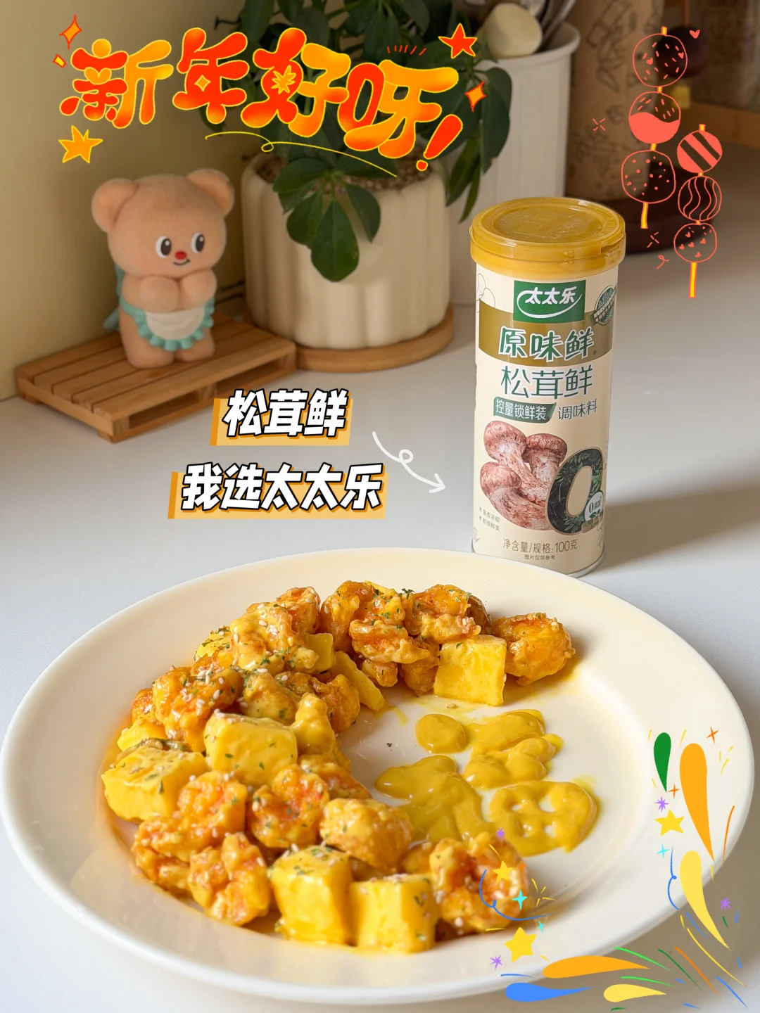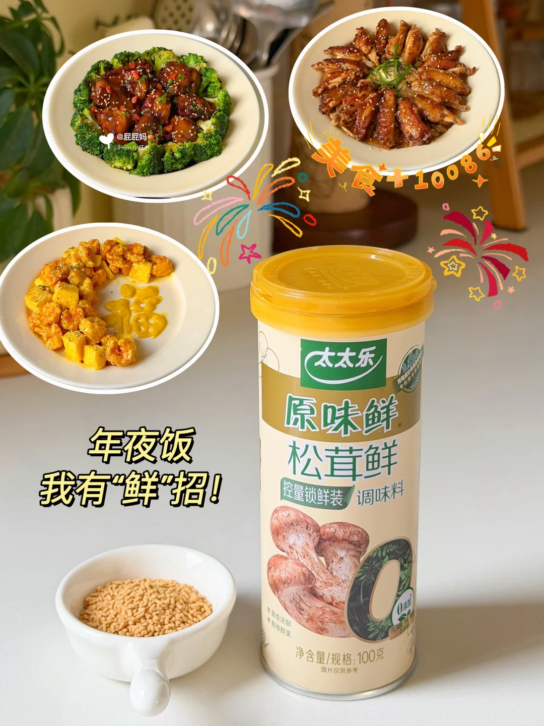 大人小孩都爱吃的年夜饭菜来咯! 春节倒计时啦🧨年夜饭团圆菜还没想好的姐妹,看看我这6道做法简单,厨房小白也能轻松完成的菜谱吧😋 [太阳R]色香味俱全,满满好寓意,快快安排上👏🏻 - 🧧福翅临门(口蘑鸡翅) 🧧黄金万两(芥末虾球) 🧧鸿运当头(红烧排骨) 🧧四喜丸子(团圆美满) 🧧金针菇肥牛卷(爆竹迎春) 🧧菠萝蜜夹酸奶(甜甜蜜蜜) - 🔍具体做法看图哦👀 做年夜菜,想要拿捏住大小朋友 🧑🏻‍🍳我也有我的小“鲜”招~ 就是太太乐松茸鲜✨ 让我轻松拿捏大宝宝小宝宝的挑剔胃👅 只选云南野生松茸🍄 配料表里是真有干松茸! 作为30多年的老品牌 📝品质自然有保障啦 配方简洁0添加 吃起来安全又放心😊 特质罐盖设计 轻松控制用量 🤏🏻单手也能操作 可方便了~ 姐妹们,开饭啦🔔