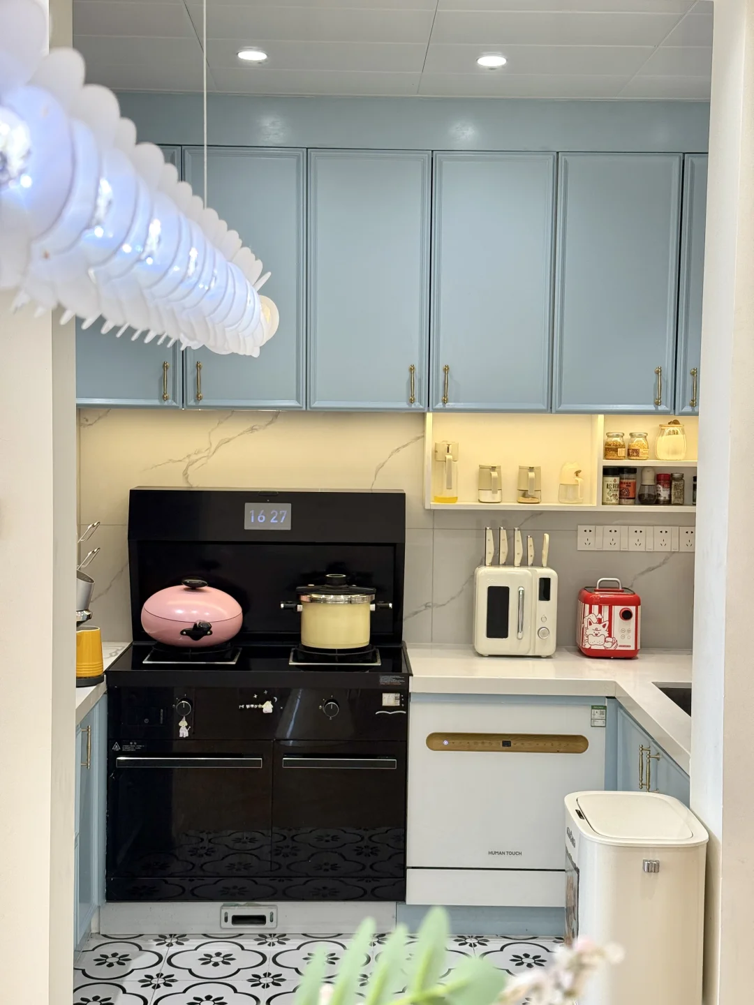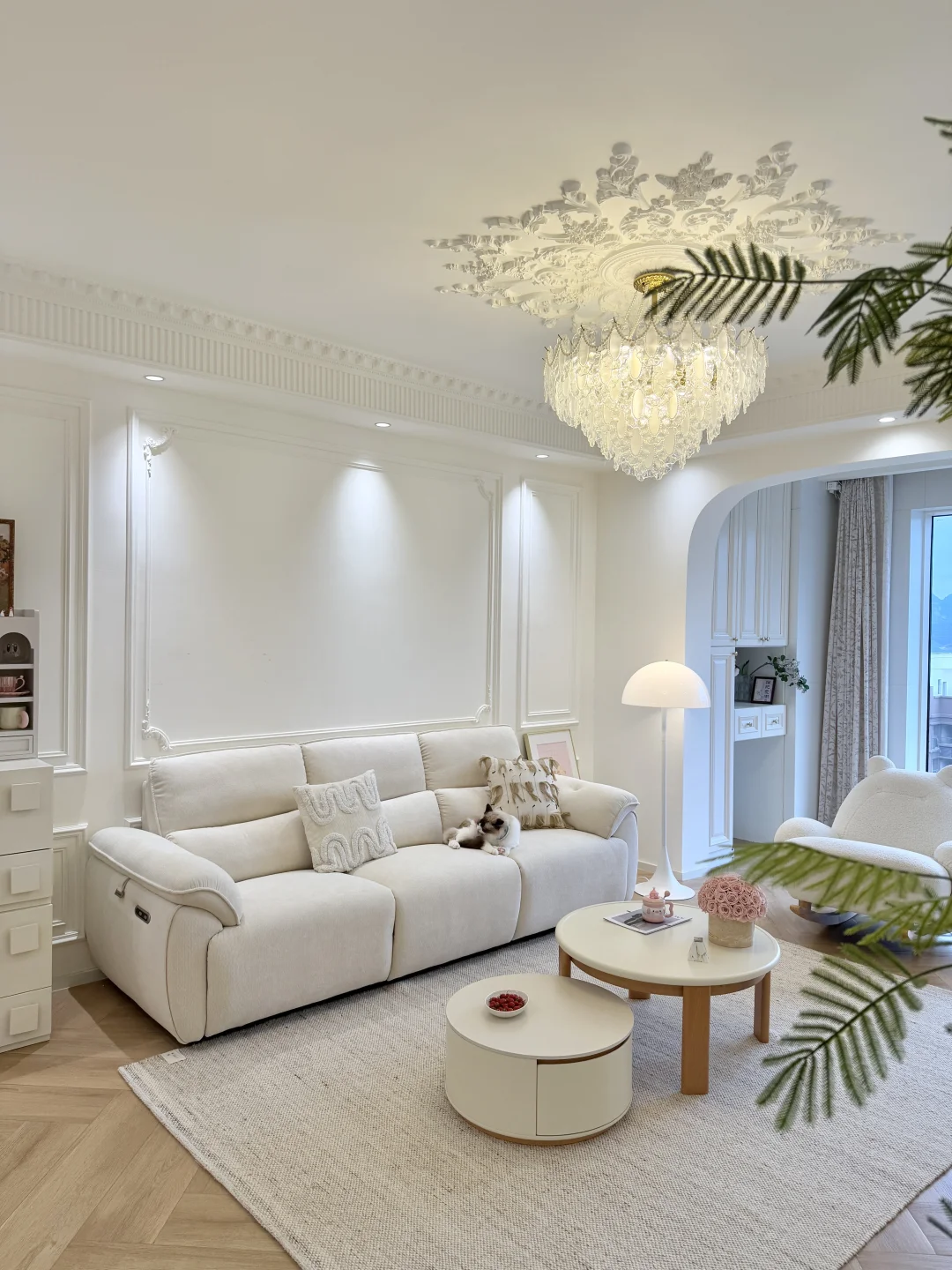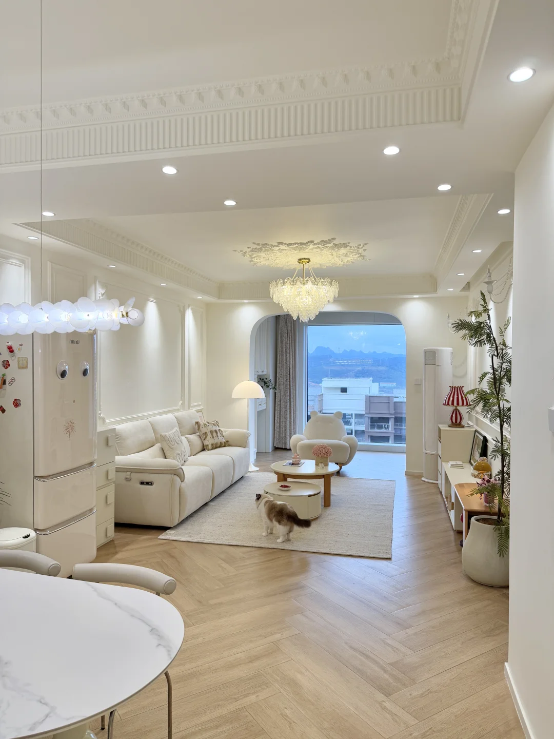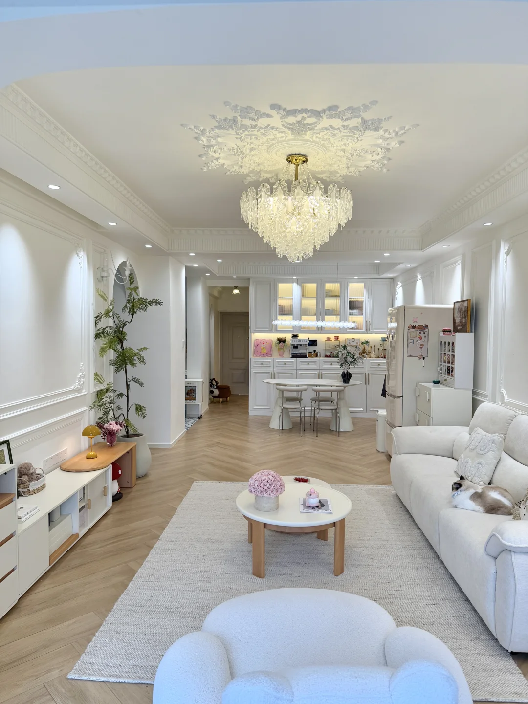全程自装没请设计师 建筑面积116 套内96平🏠 把三室两厅装成法式奶油风 ~~~ 今天分享几个比较满意的小设计 ❶:地面 通铺20*90木纹砖,显大又耐造,还有木地板的效果 ❷:厨房 虽然空间小,但是合理规划空间,也是五脏俱全了 ❸:柜子 砸掉了一个小房间,请木工专门给女友打造了衣帽间,客厅这类常待的区域,电视柜和茶几都是整套入手的,和我家的奶油风很搭 ❹:墙面 通刷低饱和度乳胶漆,让整个空间温馨舒适 ❺:阳台 阳台一分为二,一个阳台当两个用,休闲娱乐洗衣晾晒都有了 ❻:衣帽间 没留客房给对象做了衣帽间 ❼:工人 建议别找熟人帮装修