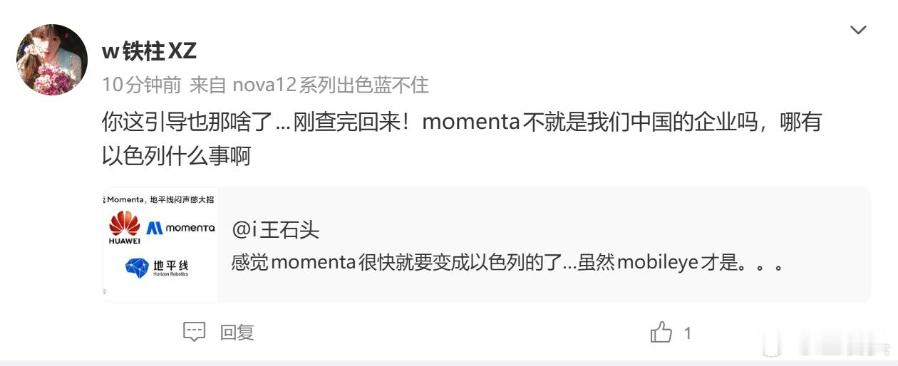 momenta被污蔑成以色列企业,说是我在引导??自己去搜一下吧,几个月前就开始了。。。而且还可以去看看这个用户,纯度惊人。