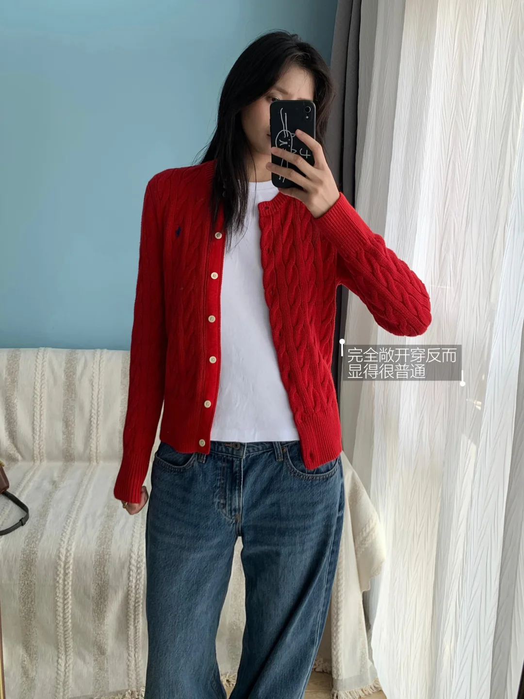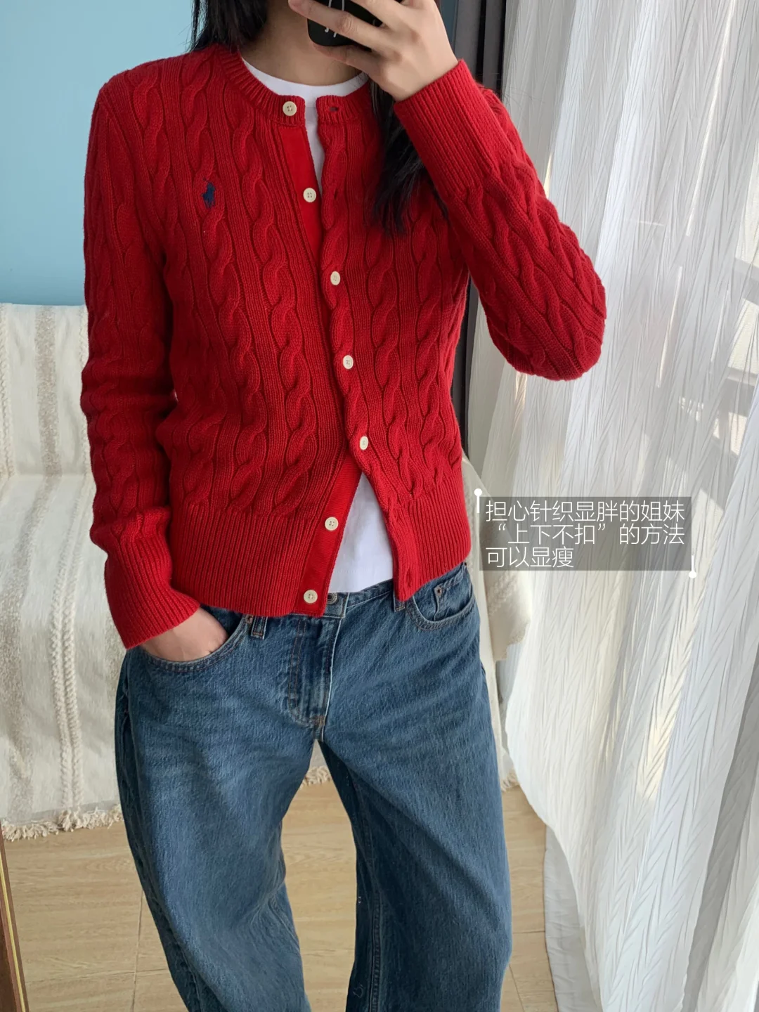 过年应应景 思来想去还是觉得红色毛衣最好穿 其它红色外套啥的后续应该不会穿 大家应该都是买红毛衣多一些? 拉夫劳伦的版型真无可挑剔 虽然是粗条纹 但一点都不显胖哦 肩部这块上身很薄 为版型和质感买单就是了[doge]