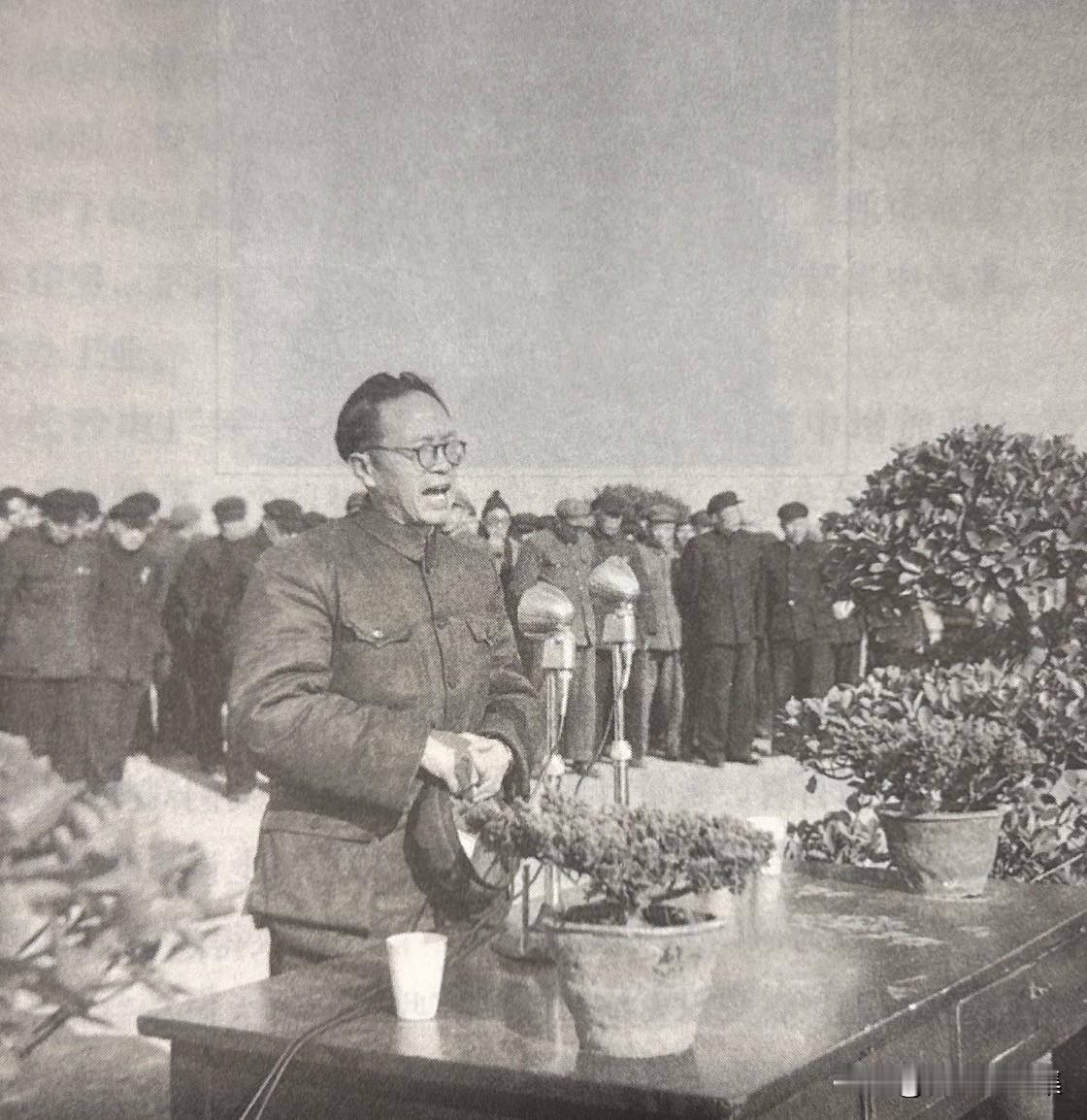 1952年,黄克诚在湖南长沙群众集会上讲话,这是他在家乡湖南主政的最后一年。从1949年10月走马上任到1952年,黄克诚在湖南仅仅用了三年时间,就完成了剿灭百年匪患、恢复工农业生产、稳定社会秩序等一系列艰巨任务。当年9月,黄克诚奉调离开湖南,前往北京担任中央军委副总参谋长兼总后勤部部长。