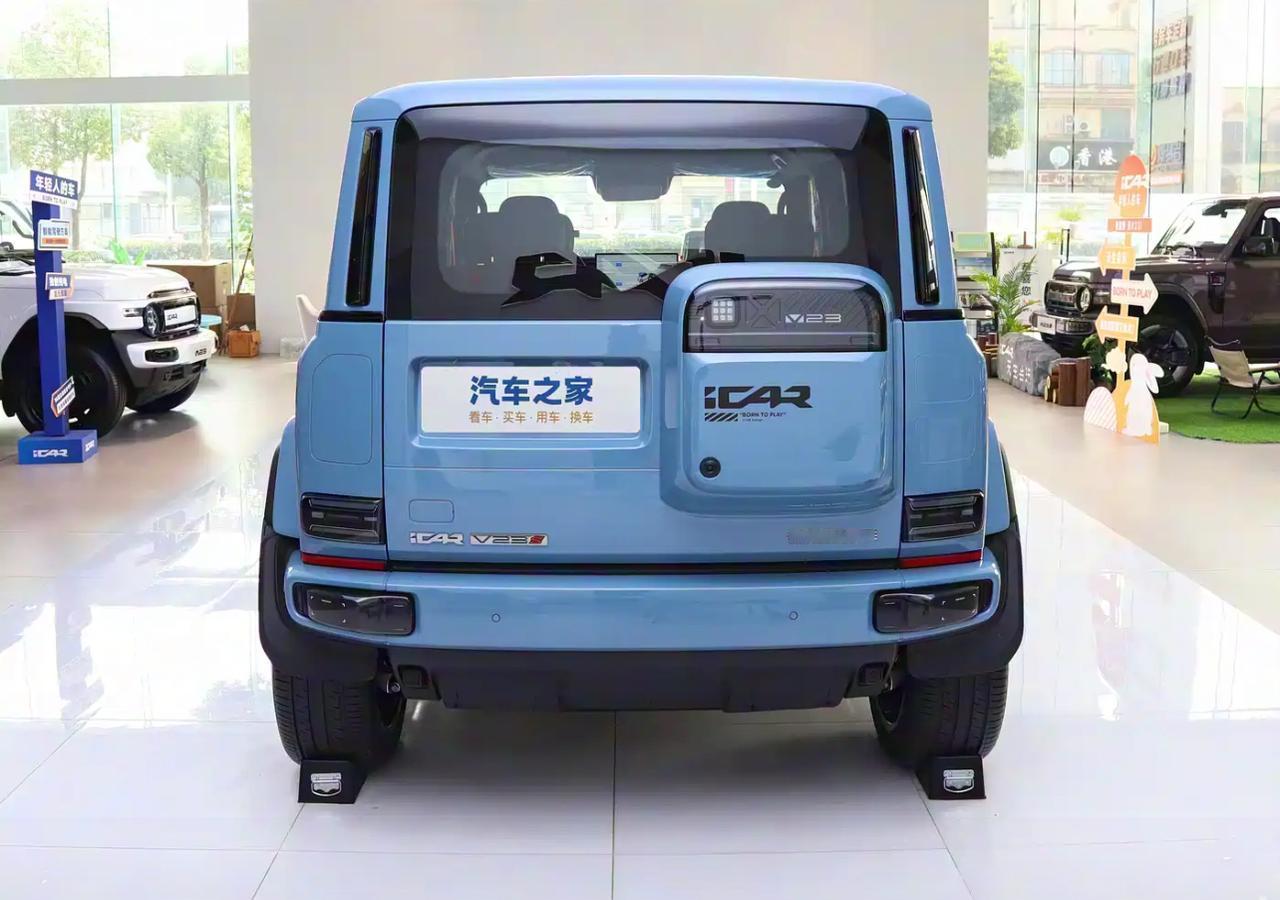 2026款iCAR超级V23官方核心参数全梳理 2026款iCAR超级V23为5门5座纯电SUV,基于i-SWIFT雨燕平台打造,2025年9月21日上市,官方指导价12.28-17.48万元,含两驱/四驱及赛博版等配置。车身尺寸4220×1915×1845mm,轴距2735mm,后备厢容积234-1366L,接近角43°、离去角41°,四驱版最小离地间隙210mm,两驱版200mm,涉水深度600mm,风阻系数0.36,提供多色车身可选。 安全方面搭载高强度车身,标配6安全气囊,配备透明底盘与540度全景影像。内饰配备10.25英寸仪表与15.6英寸中控屏,搭载地平线J3+TDA4双芯片,支持HUAWEI HiCar与5G联网,前排有50W无线快充,全车20+储物空间。动力上两驱版配185kW单电机,401版59.93kWh电池续航401km,550版80.16kWh电池续航550km;四驱V23S版总功率335kW、扭矩490N·m,0-100km/h加速4.5秒,80.16kWh电池续航501km,支持160kW快充,30%-80%充电需20分钟,四驱版有6种地形模式与i-AWD鬣蜥四驱系统,智驾搭载猎鹰500系统,提供L2+级辅助功能。 (图片来源:汽车之家)