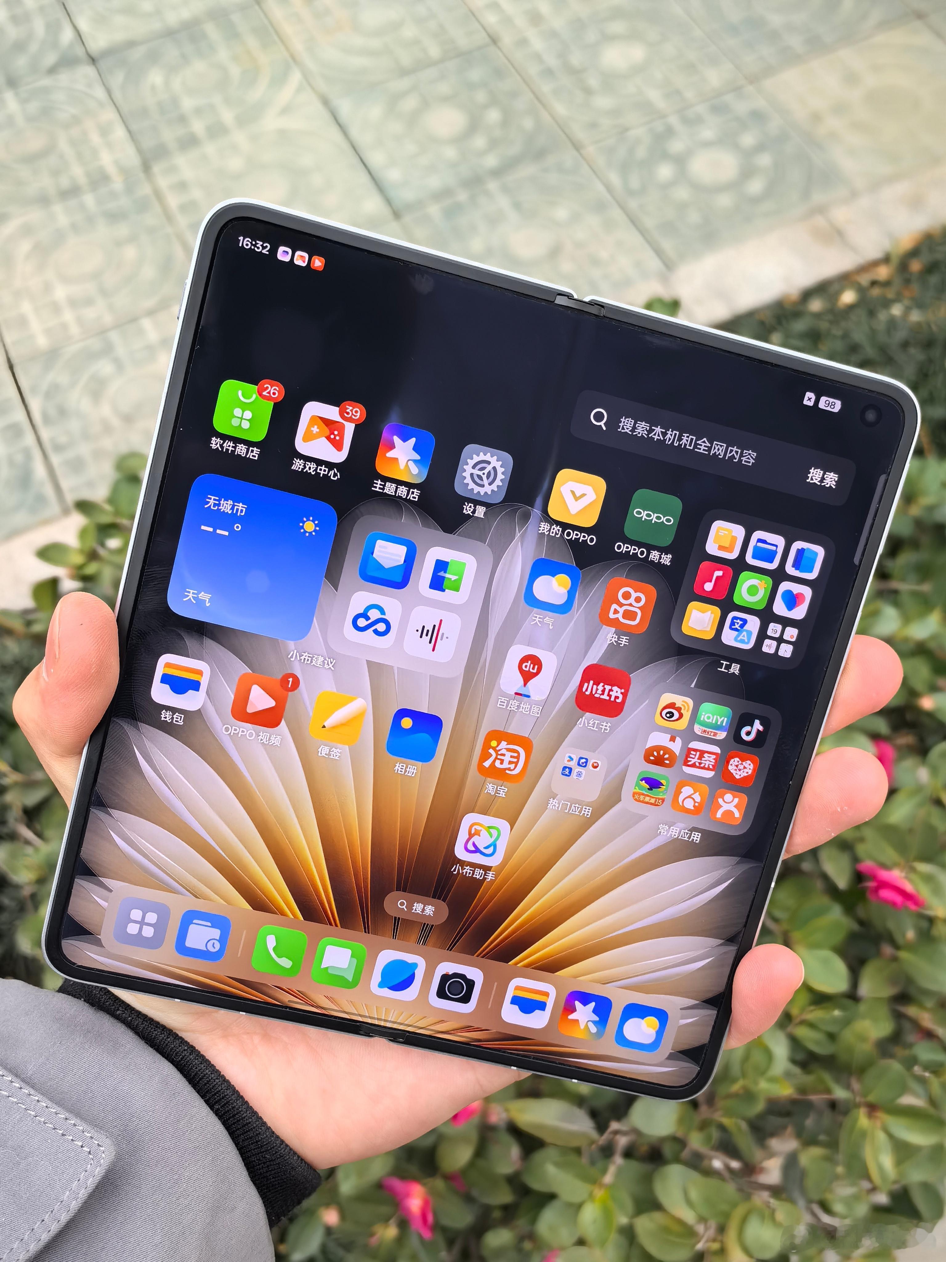 上手 OPPO Find N5 有段时间,最直观的感受是它 8.93mm 的闭合厚度,揣兜里和直板机没差,日常通勤单手握持完全不压手。