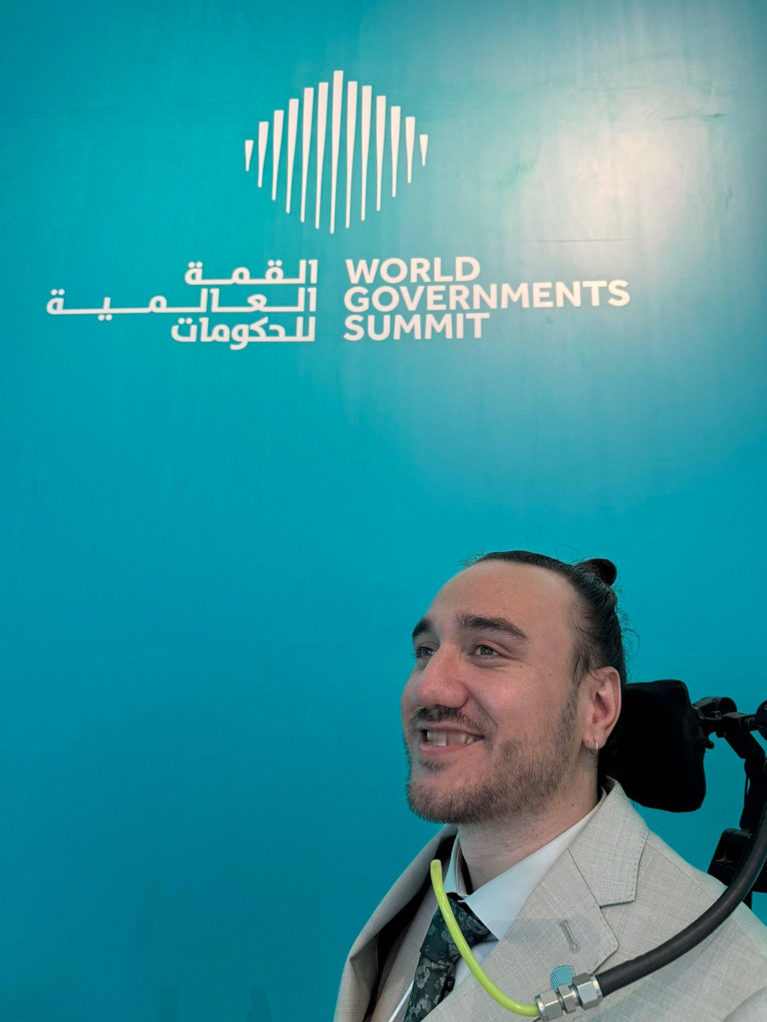 照片中,他身着正装、坐在轮椅上,背景是峰会醒目的标志,脸上带着从容的微笑。那一刻,他已远超“患者”的标签,成为活生生的证明:科技能将身体的限制转化为通往无限可能的起点。