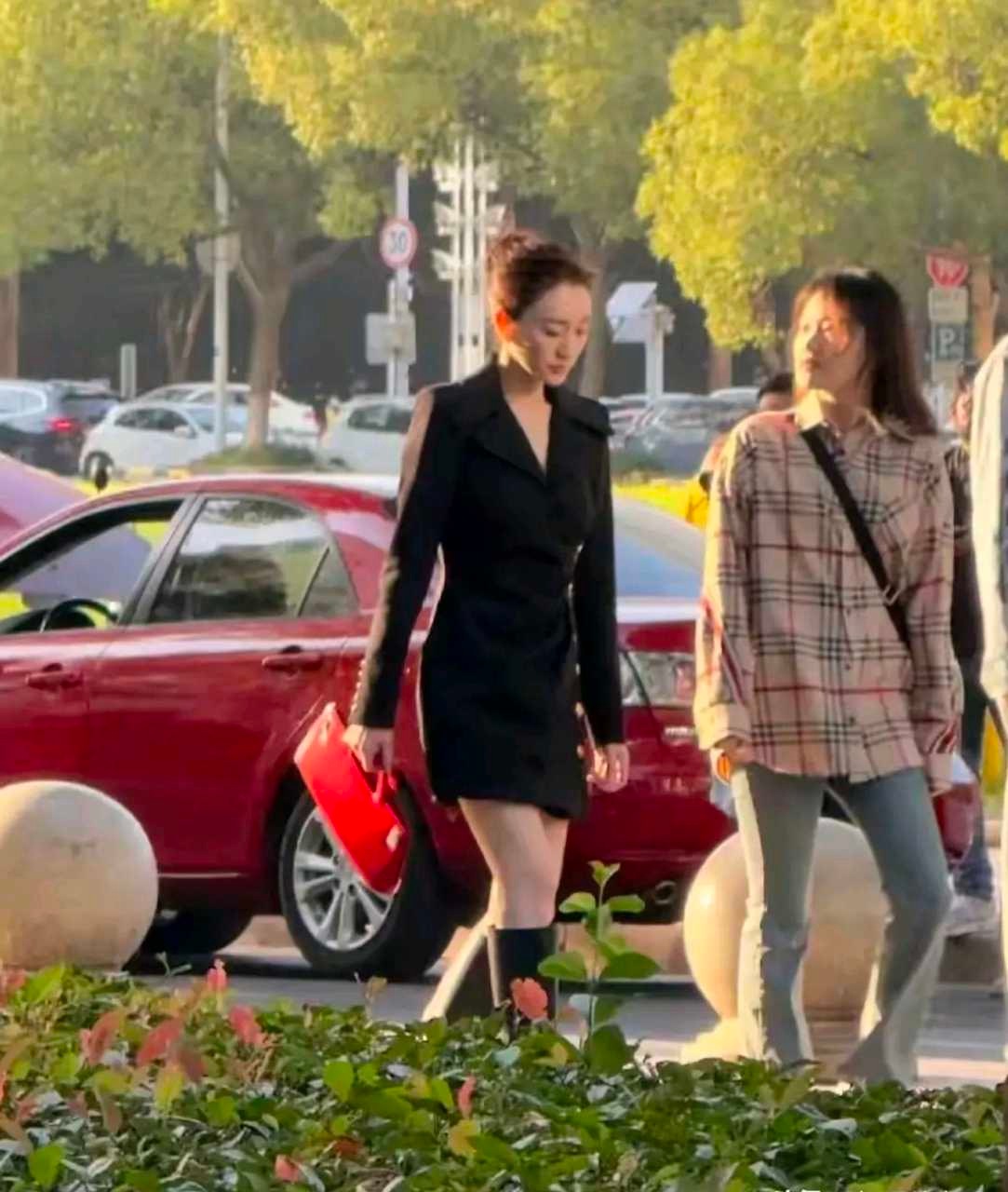 47岁李小冉拍戏被偶遇,人高又瘦,围观大叔看了眼睛都移不开
