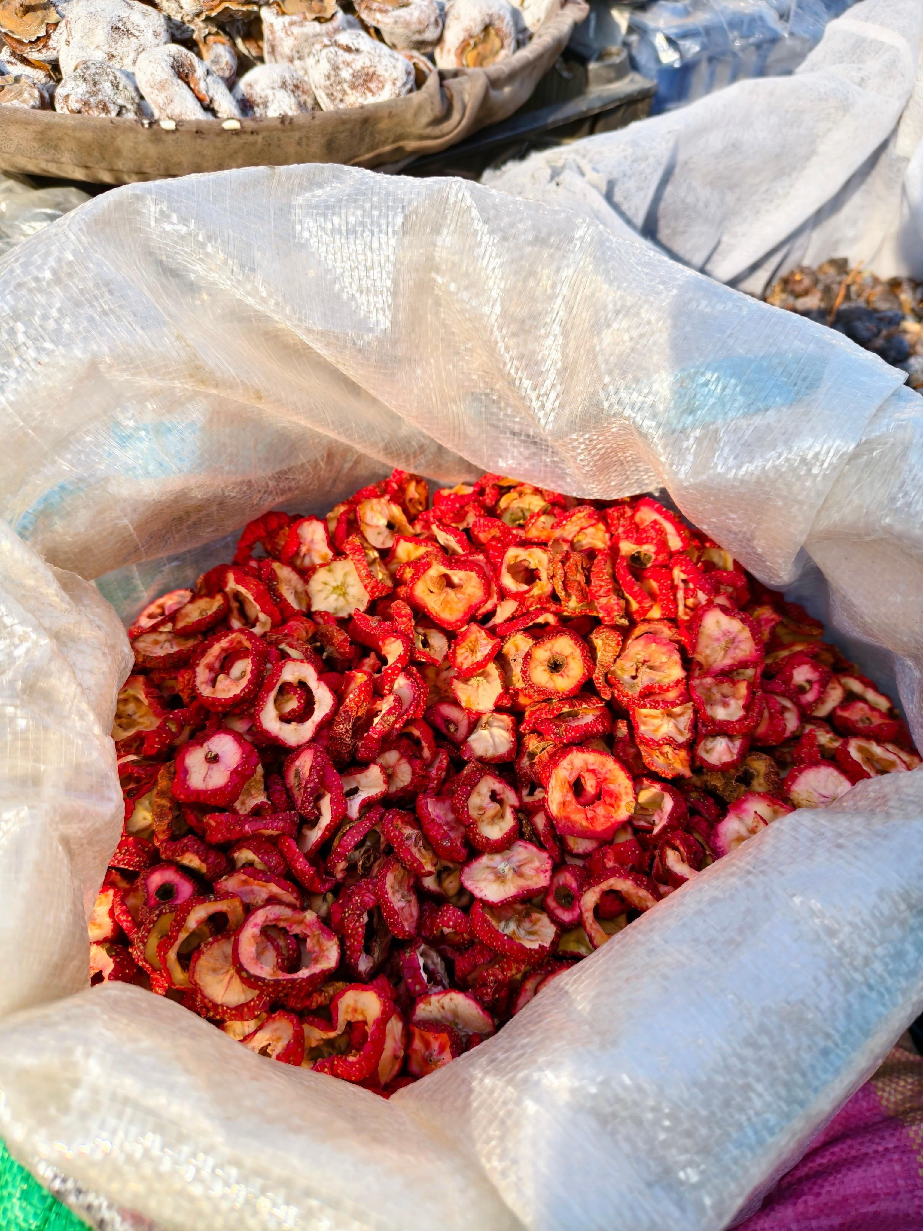 各种类的苹果和梨,还有柿子干儿,果干儿,应有尽有