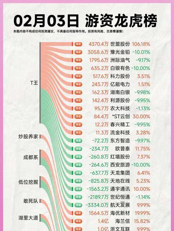 26年2月3日A股游资复盘。龙虎榜