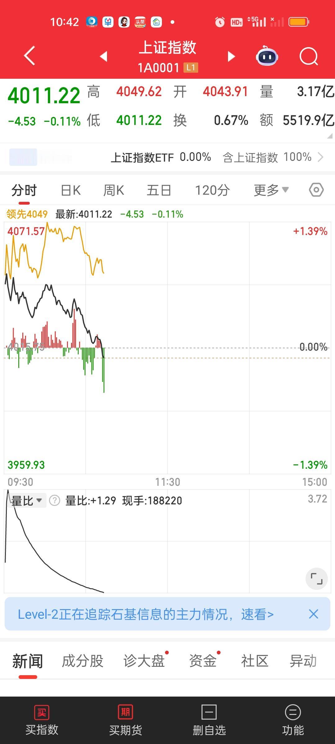 今天盘面走的很刺激的,开盘就是超过40个点的爆杀,我相信在这个地方的割肉的人绝对不在少数。但就是这一割又会造成巨大的遗憾,你扛不住,这口肉你就注定吃不着,你不但能抗住而且还能低位加仓,那你想不赚都很难。 没有一个行业是轻轻松松就可以把钱赚了的。炒股看着简单,其实赚钱反而最难。能一天一个月盈利很简单,但10年1倍者寥寥无几。 今天选择在尾盘追高买进的人,大概率又要被套了,今天只是没人砸盘,也就是说某队和机构都没有砸,从大盘资金净流入接近170亿就能看出来,可它们手里的15万手空单并没有减少是不是?你能保证明天也不砸盘?又是一阳改三观的思想,这种思想要不得!