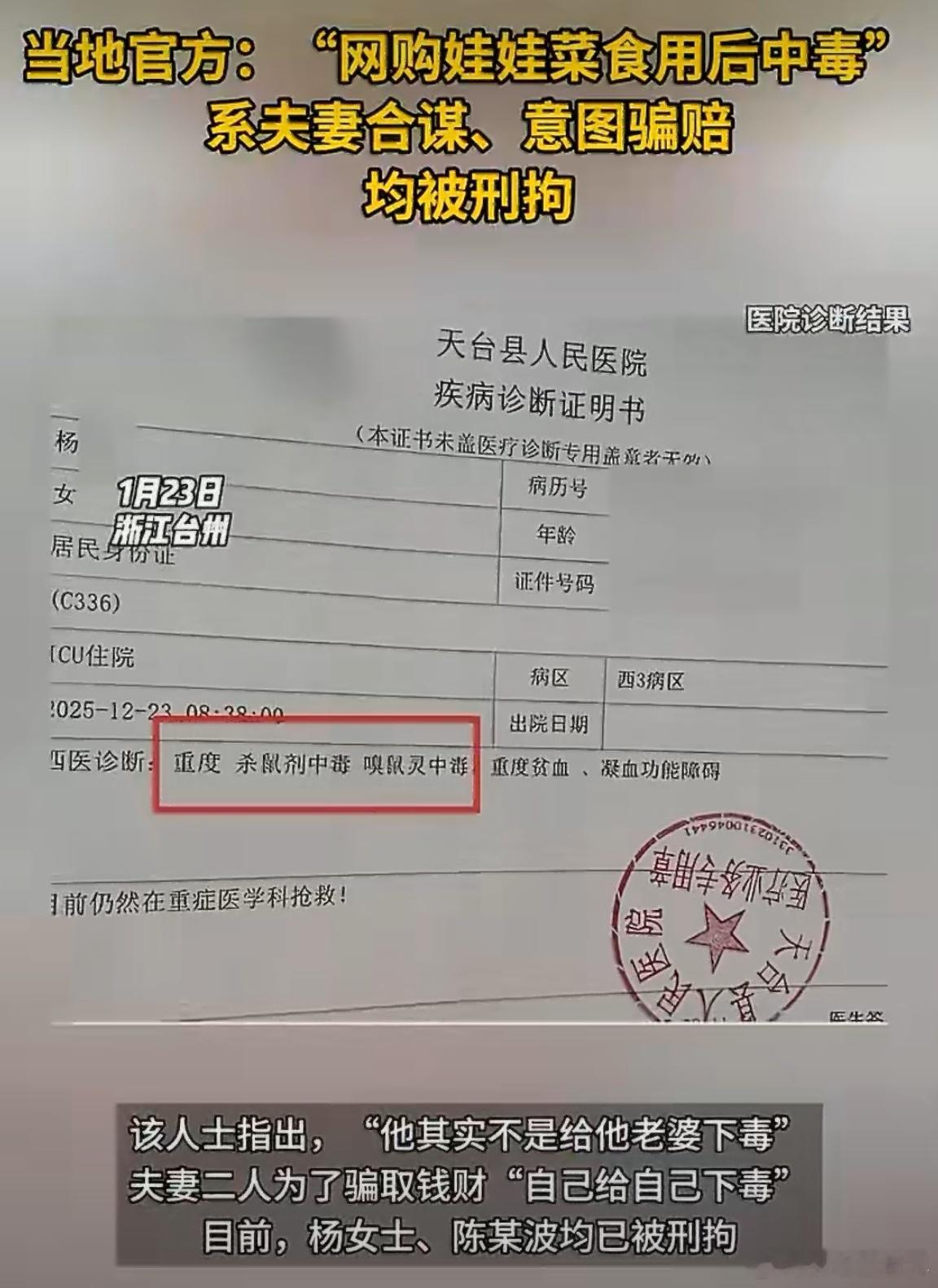 吃娃娃菜中毒夫妻均被刑拘