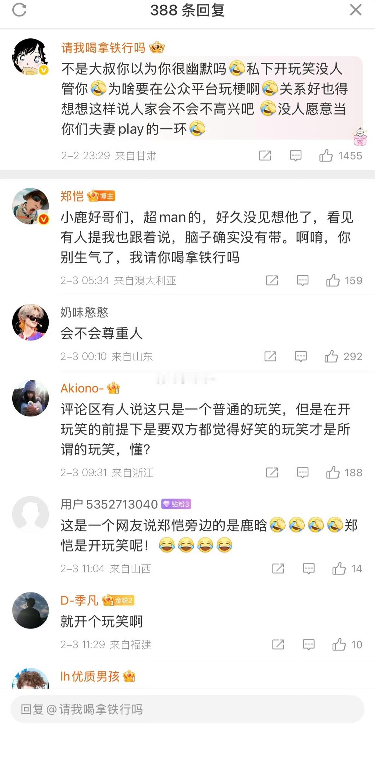 郑恺这波玩笑真的尬住了! 郑恺晒日常vlog,镜头里苗苗出镜超自然,结果有网友没认出来,随口问了句视频里的女生是谁。谁料郑恺直接玩梗回复:是鹿晗!本想蹭波热度逗逗网友,可把自己老婆说成别人的操作,属实让人看不懂。玩笑开得没边界,不仅尬到路人,连粉丝都觉得离谱,这波回应真的越品越怪,属实难评!