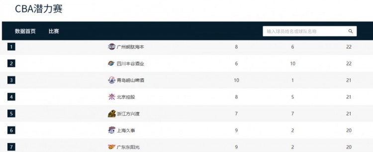 上海男篮与浙江广厦同积分,且交手胜场数相同,但因为潜力赛积分比对手少一分(上海男篮少赛三场),所以暂时位列联赛第二名,但不影响球队创造近年来的最佳联赛开局。