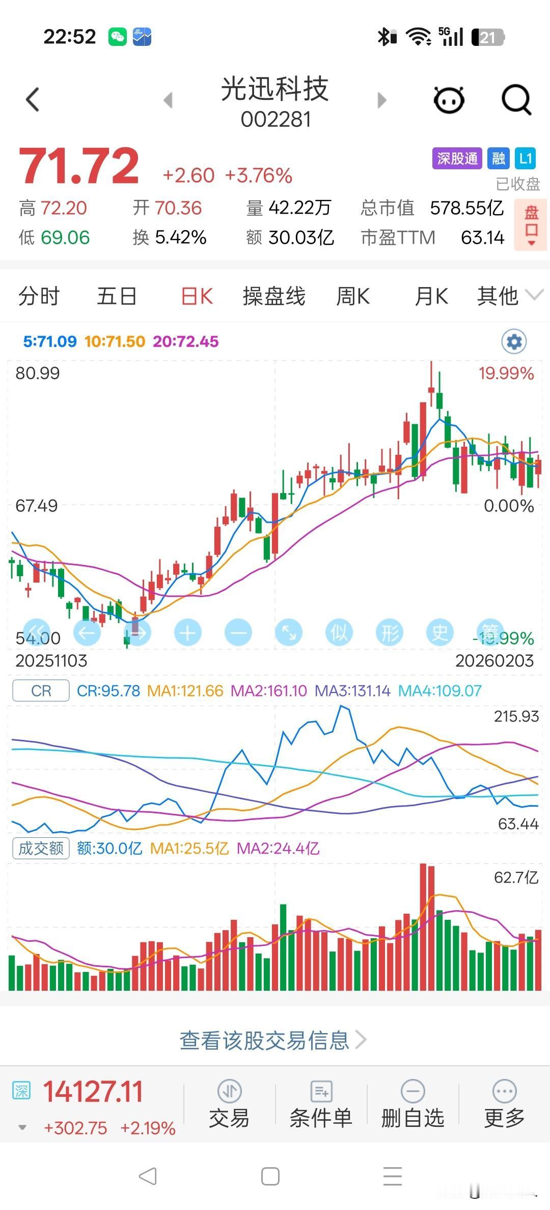 明早以光迅封板。