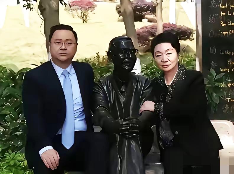 2023年,陈景润的忌日那天,夫人由昆携儿子陈由伟来到厦门大学丈夫的铜像前寄托哀思,并与铜像合影留念。