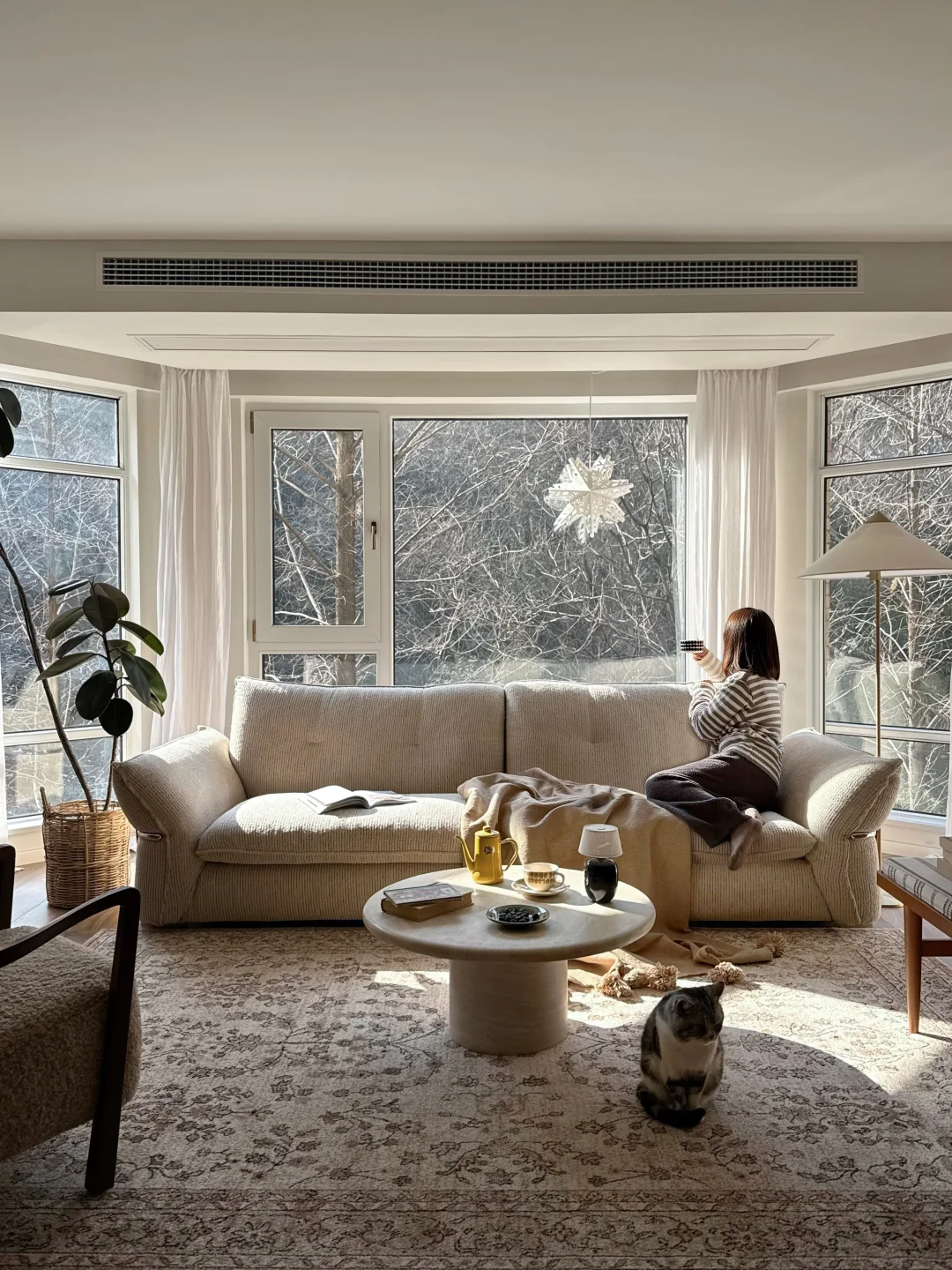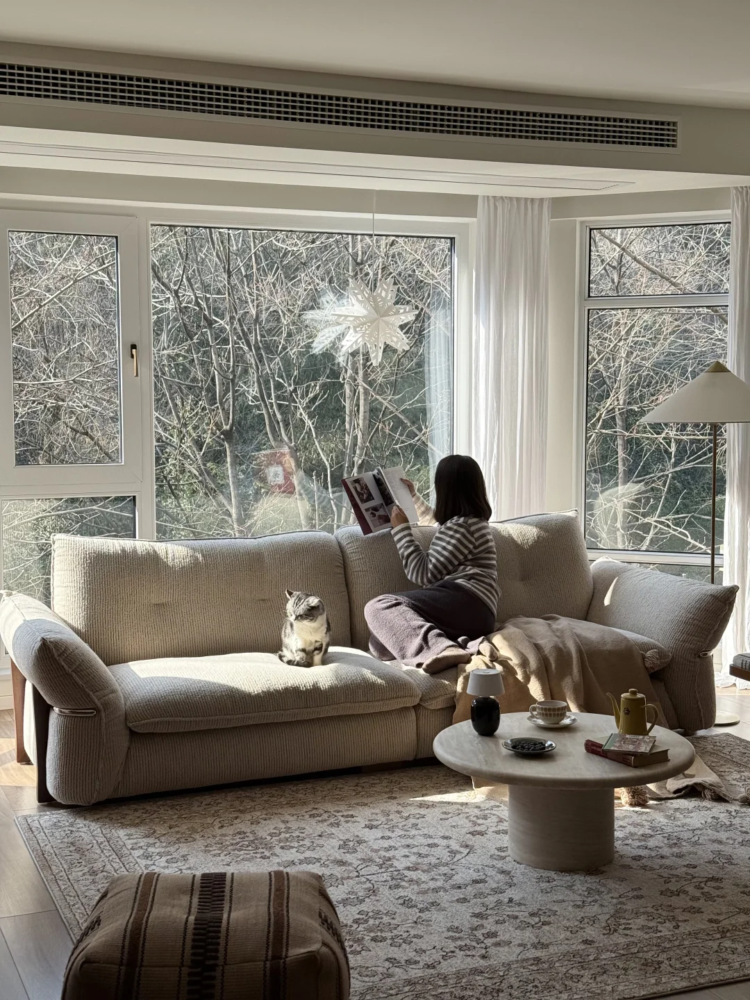 如今每个清晨或黄昏,我都爱窝在这里,看窗外光影流转,感受羽绒沙发传来的柔软支撑。原来兜兜转转四次搬家,不只是为了一间更豪华的房子,而是为了找到一处能安放身心的角落。