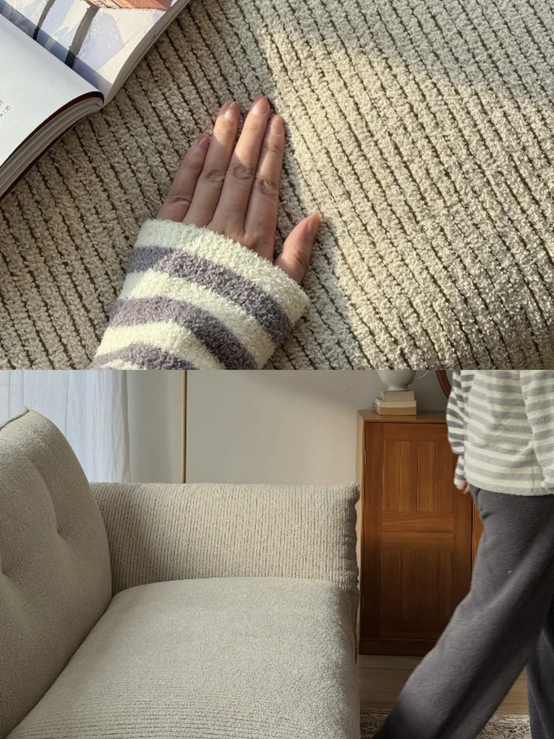 米象初见沙发,简直是为我这自然系的家量身定制。燕麦色的布艺沙发像初春晨雾裹着阳光,又似泛黄情书般质朴真诚,低饱和度的温柔,瞬间软化了整个空间的节奏。