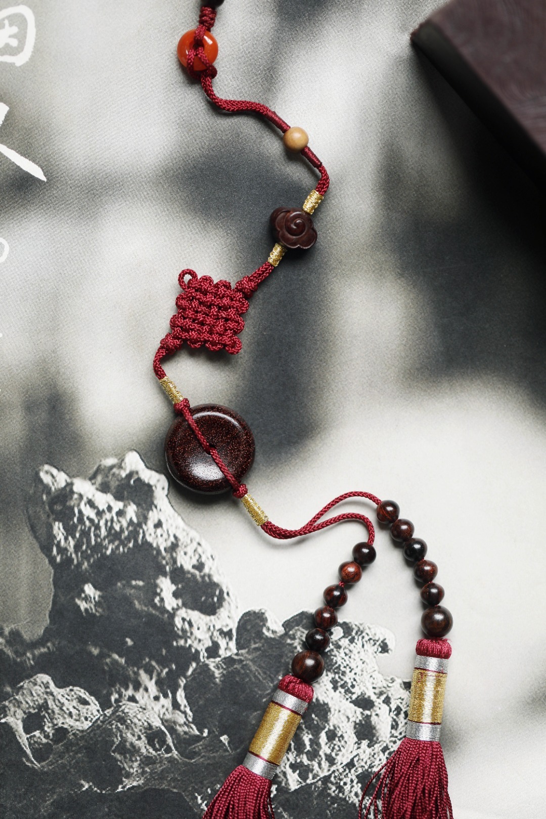 老山檀香 | 西番莲纹 吊坠醇化老料,味道纯正、奶香味浓,双面浮雕西番莲纹,枝叶