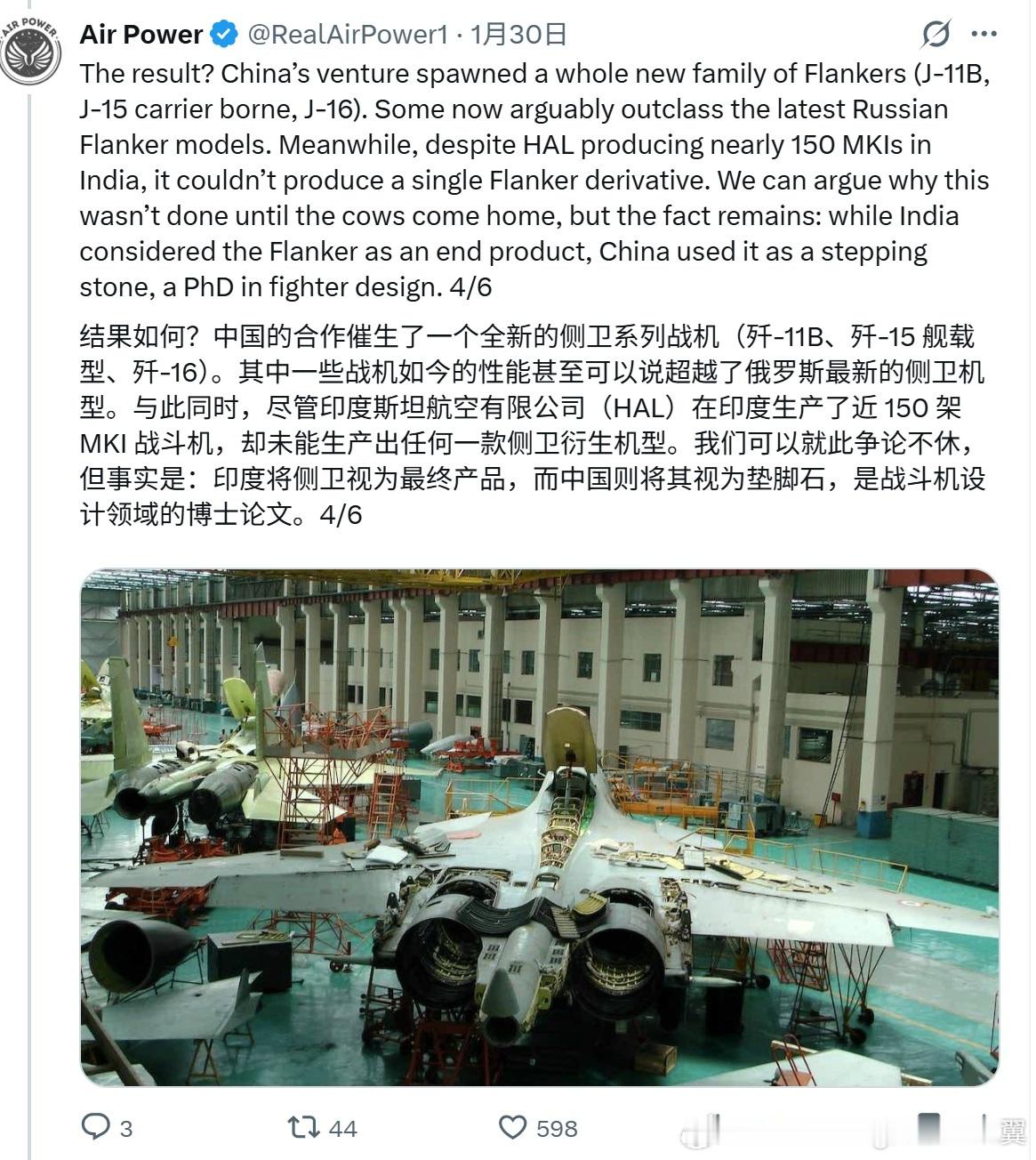 外国博主评价中印两国战斗机工业,其实中国的航空工业体系、科研能力、工人素质远不是印度能比拟的,并不是说三哥想努力就能取得效果。
