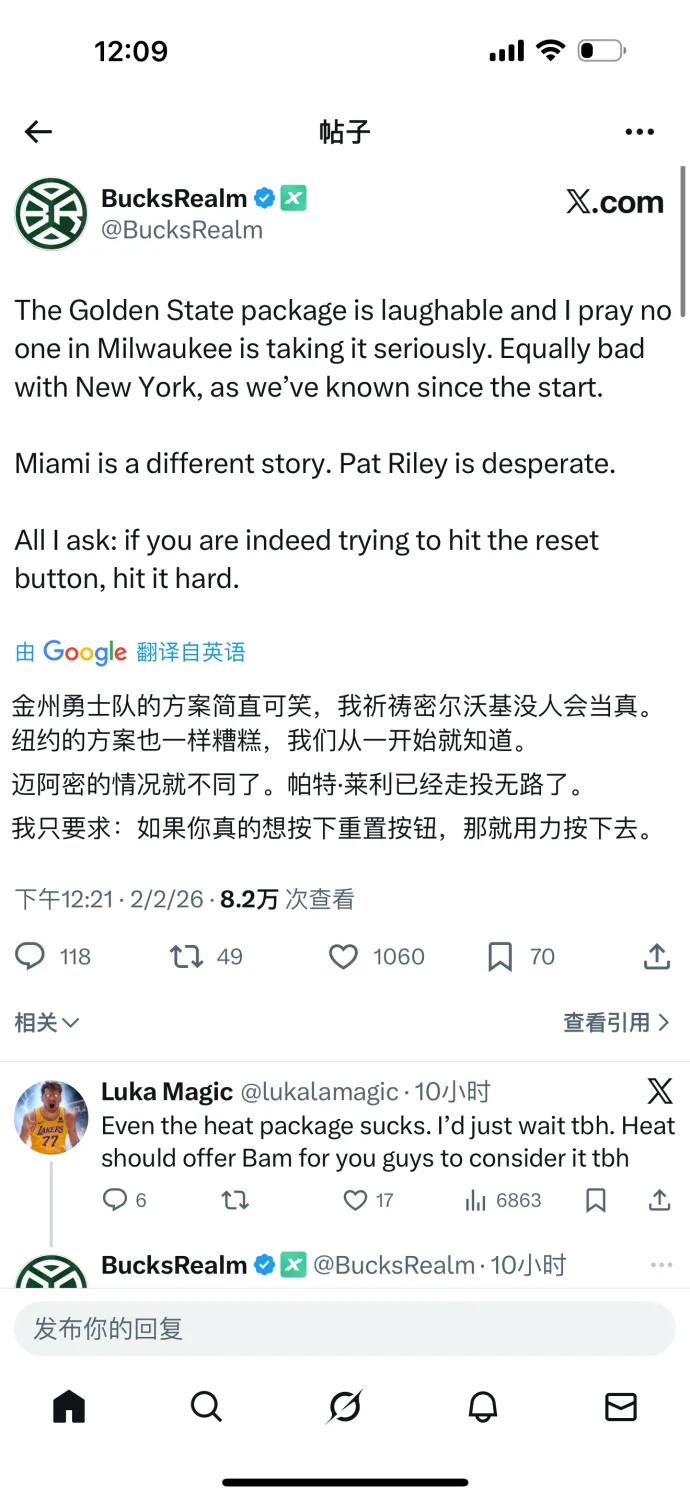外网雄鹿自媒体发的,再不济热火拿字母咱们拿嘴哥是不是也行? 字母哥nba吐槽大会金州勇士