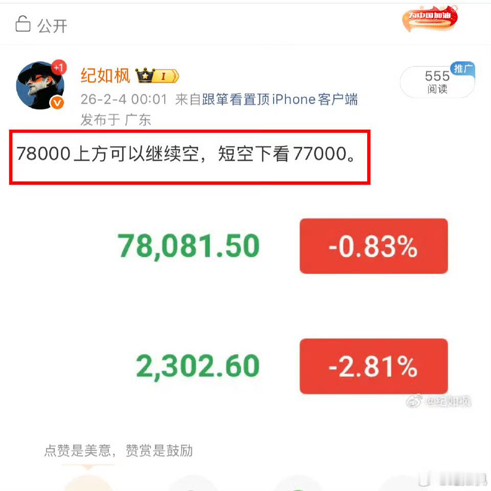 这下好了,老纪的含金量还在上上升!现价75500-75800附近直接反手哆,看反弹!