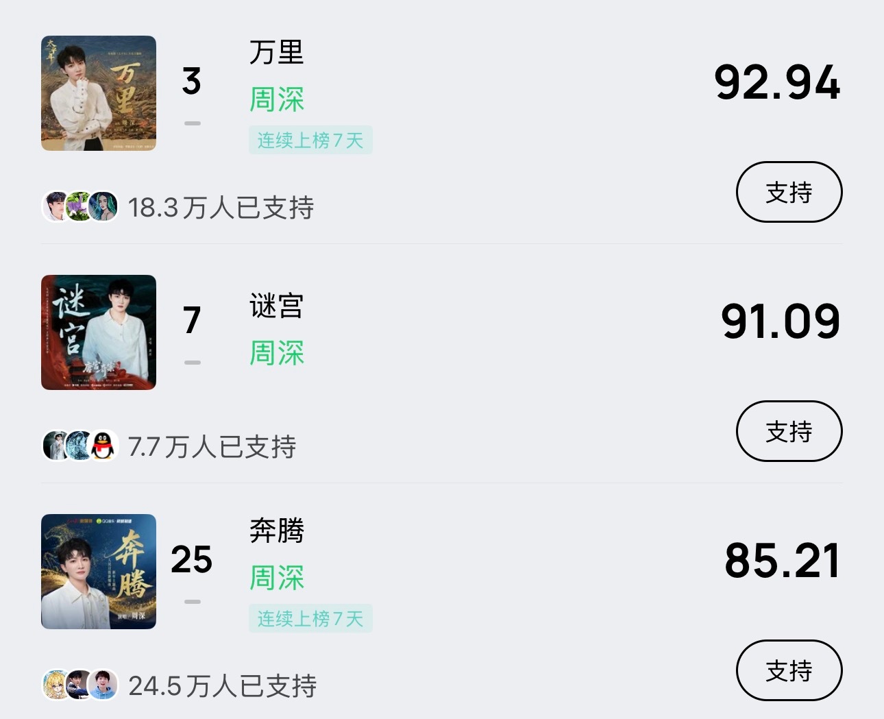 周深 📣 2.3 巅峰潮流 📣米米们晚上好,每歌做6个动作路径:Q音-乐馆-排行-潮流巅峰