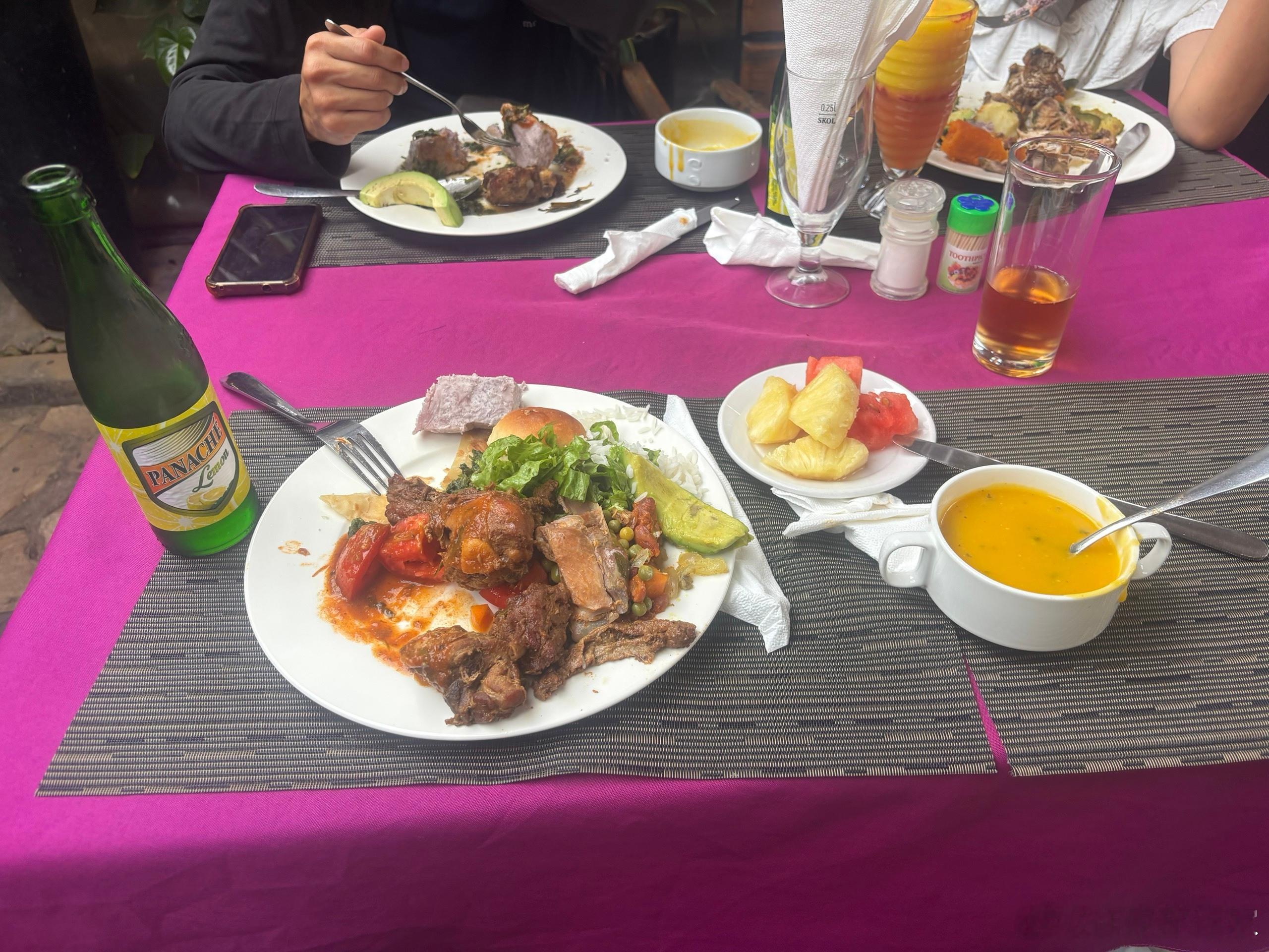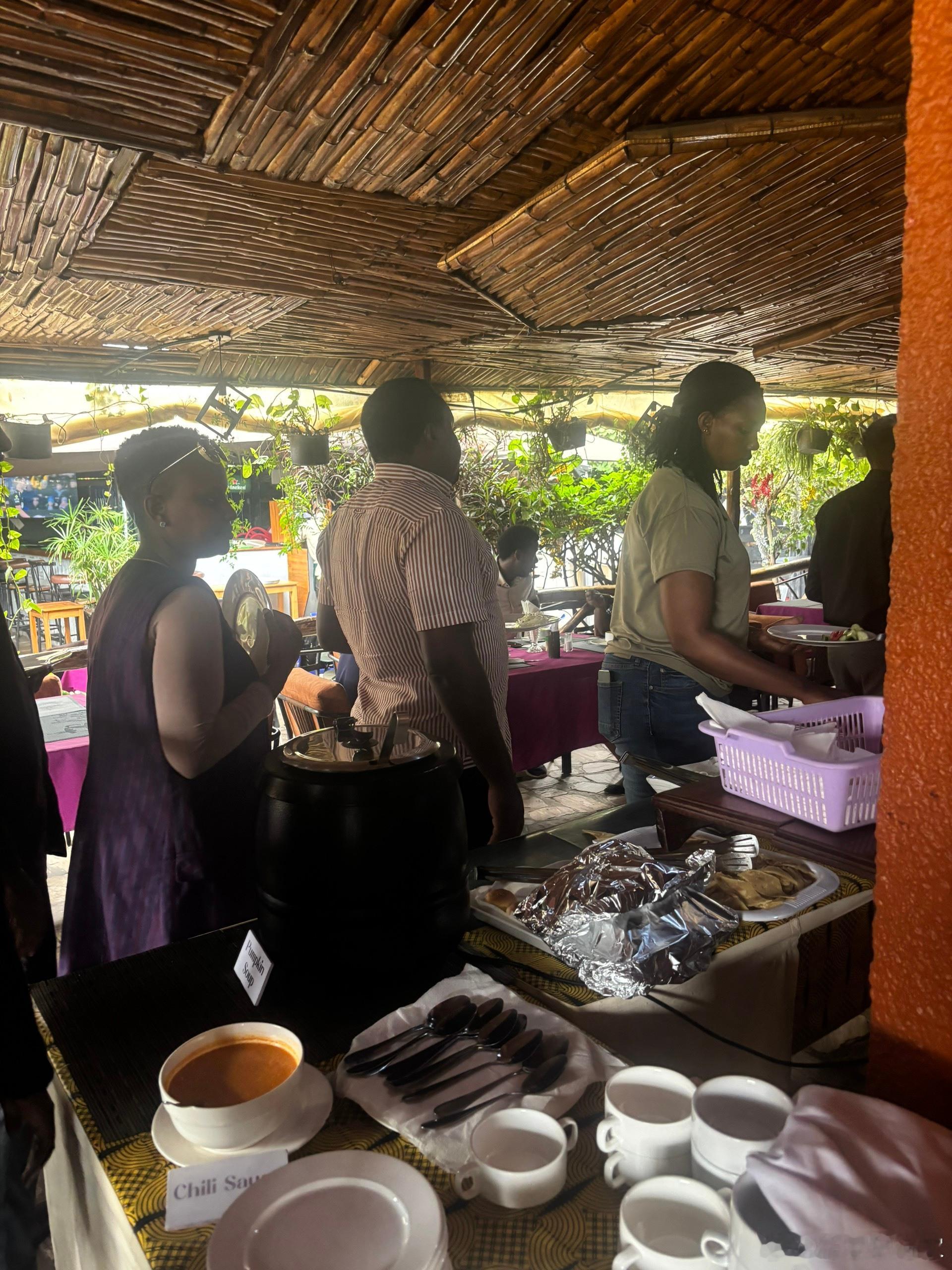 这是卢旺达首都基加利,一家非常有名的餐厅,中午提供自助餐,晚上营业烧烤,是卢旺达排名前三的烧烤,我们先吃的自助餐,那个汤很好喝,其他挺一般的,但价格才五十人民币,性价比非常高,虽然我们只吃了一次,但还是可以尝尝,这里的人特别多,最好提前占位置。 津巴布韦