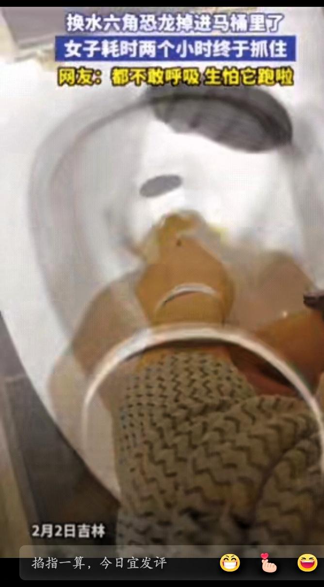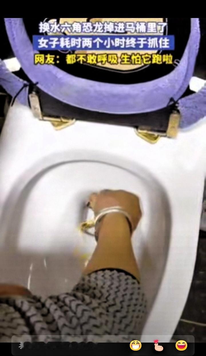 不忍直视!吉林一女子上完厕所,直接将手伸进马桶,一扣就是2小时,原来女子在家给六角恐龙换水时,不慎让小家伙滑进了马桶 当天,她像往常一样给六角恐龙换水,端着小容器操作时没拿稳,六角恐龙一下子掉进了旁边的马桶里,好在没有直接滑入管道深处,而是停在了马桶洞口。女子见状十分着急,既不敢直接用手去抓,怕用力不当把它推得更深,也没有合适的工具,担心硬夹会伤到它柔软的身体。 无奈之下,她找来一根细绳,蹲在马桶边慢慢尝试。她把绳子轻轻放在六角恐龙旁边,一点点调整角度,试图用绳子套住它。整个过程需要格外小心,稍有动静就可能让小家伙受惊,她只能屏住呼吸,反复调整、耐心试探。这一蹲就是两个小时,腰酸背痛也不敢轻易起身,生怕错过最佳时机。 最终,她成功用绳子套住六角恐龙,小心翼翼地将它拉了上来,小家伙也没有受伤。 这件事在网上传开后,不少网友觉得既有趣又暖心。有人觉得过程曲折好笑,也有人被女子的耐心和对小生命的负责打动。养宠物本就是一份责任,愿意花时间、沉下心去守护一个小生命,这份认真和温柔,正是生活里最朴实的温暖。