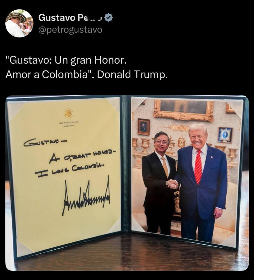 🔻特朗普与哥伦比亚总统佩德罗的会面已经结束。🔻特朗普对佩德罗说:“无比荣幸……我爱哥伦比亚”——这话是佩德罗自己发在官方账号上的。特朗普称有问题的是比尔盖茨那些人热点现场海外新鲜事
