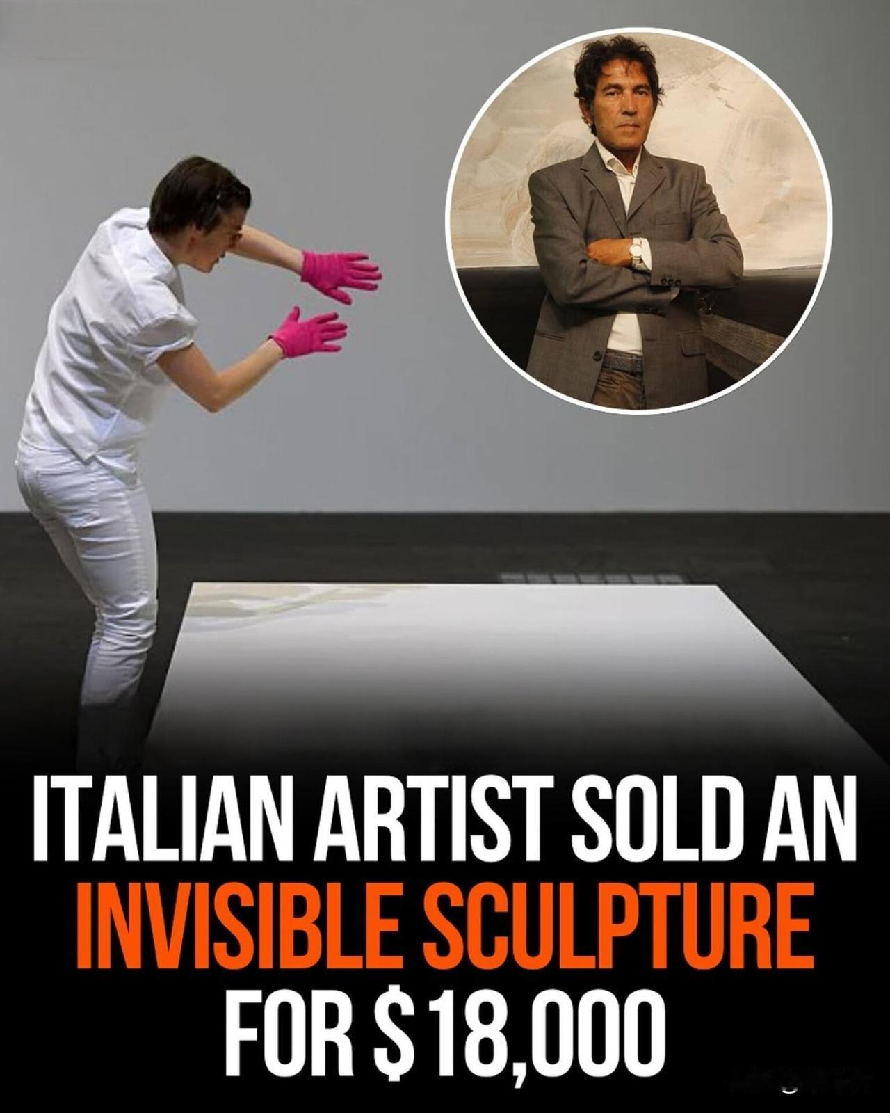 这幅图像展示了意大利观念艺术家 萨尔瓦托雷·加劳 (Salvatore Garau) 的一件名为《我是 (Io Sono)》的“隐形雕塑”的销售事件。这件作品没有物理形式,却在拍卖会上以约合1.8万美元(约1.5万欧元)的价格成交。 关键信息 艺术家: 萨尔瓦托雷·加劳 (Salvatore Garau) 作品名称: 《我是》 ("Io Sono", 意大利语意为“I Am”) 成交价格: 约18,000美元 作品概念: 这件雕塑是完全非物质的,存在于一个指定大小(约5x5英尺)的空旷空间内。 交付物品: 买家没有收到任何实物,而是获得了一份真品证书和展示说明。 艺术家阐释: 加劳认为,这件作品并非“无物”,而是一个充满能量、思想和精神的“真空”。他将其比作人们塑造未曾谋面的神祇,旨在激活观者的想象力。 社会反响: 这次出售引发了全球范围的辩论,讨论点集中在艺术的本质、价值来源(是物体本身还是其背后的理念)以及观念艺术的界限。