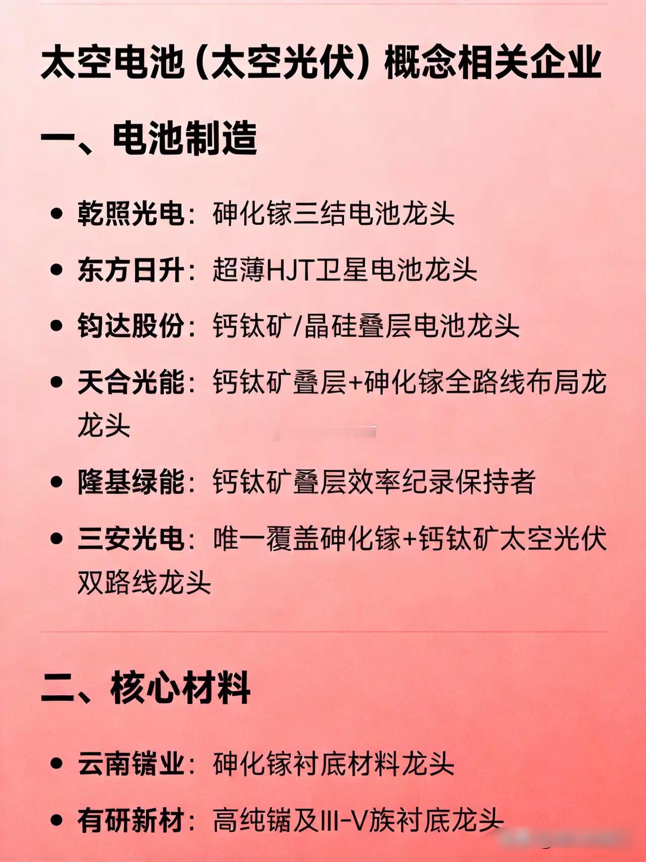 太空电池(太空光伏)概念相关龙头企业一、电池制造乾照光电:砷化镓三结电池龙头东方