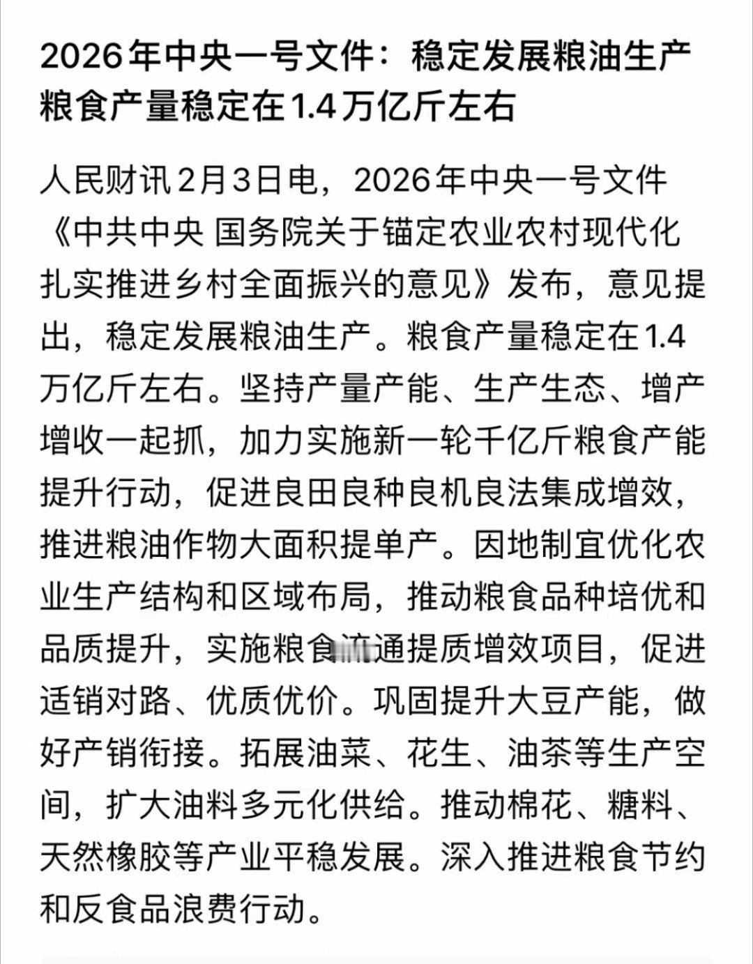 财经早读:十五五”首个中央一号文件重磅发布!文件核心明确:锚定农业农村现代化,以学习运用“千万工程”经验为引领,全面推进乡村产业、建设、治理升级。 目标是把农业建成现代化大产业,让农村具备现代生活条件!核心受益方向梳理: