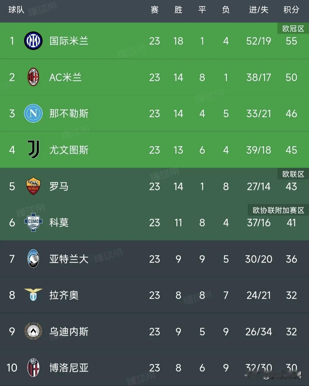 米兰客场3-0击败博洛尼亚,仍然落后榜首的国米5分,罗马本轮输球,跌出前四。 单线作战的米兰,上升的势头很猛,阿莱格里功不可没;而那不勒斯在欧冠出局后,孔蒂也将全部心思放在了卫冕上。尤文则在身后一直虎视眈眈,静待前面的球队犯错。 罗马实力稍逊一筹,进攻端乏力,加斯佩里尼对此也毫无办法,想改变球队风格,需要很长一段时间,并且俱乐部高层还要给予持续的引援支持,先争取一下欧冠资格吧! 最后说说我的主队:国米,冬窗只引进了马索林,且还不能立即使用。目前,国米仍旧是三线作战,齐沃身上压力不小,但他做的不错,采取轮换的情况下也保证了战绩。 二月对于国米来说极其关键,有两场欧冠附加赛,还有一场国家德比,这三场比赛都是硬仗。另外,还要客战萨索洛和莱切,我只希望伤员们早日归队,能够为齐沃所用。