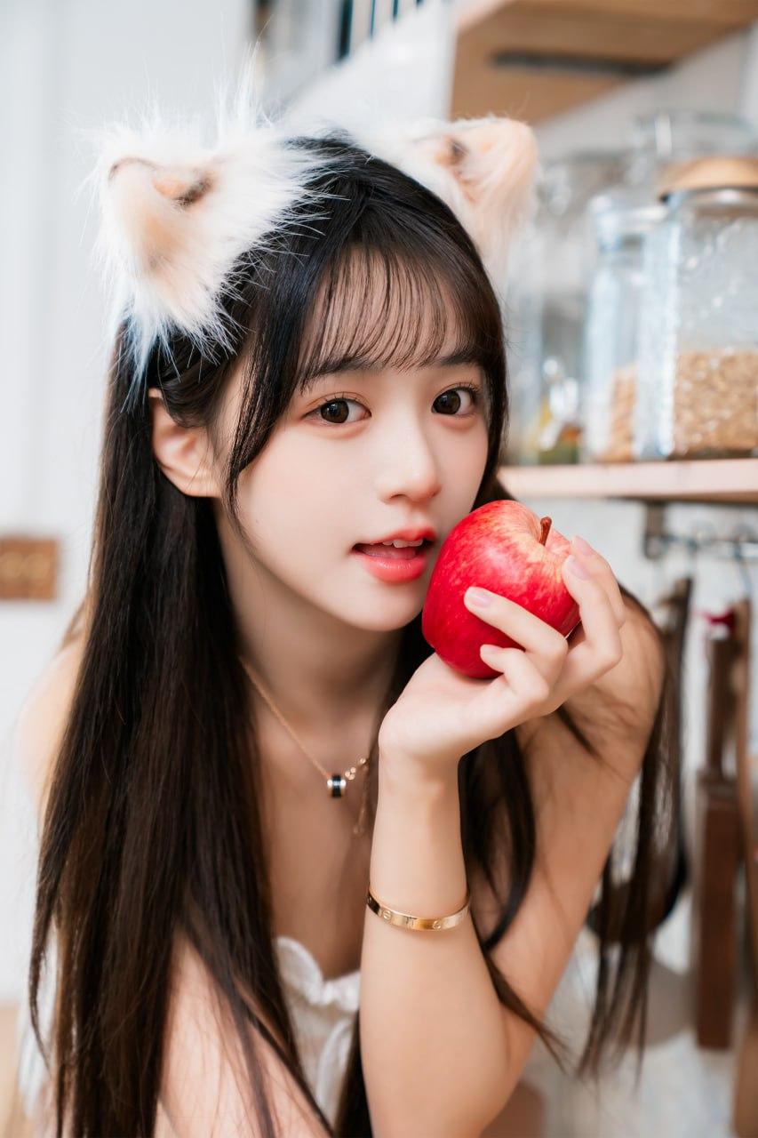 萌宠少女与红苹果的甜蜜邂逅🍎💕猫耳 少女 甜系猫耳少女 猫耳少女照 猫耳萌萌哒女孩 猫耳萌妹子
