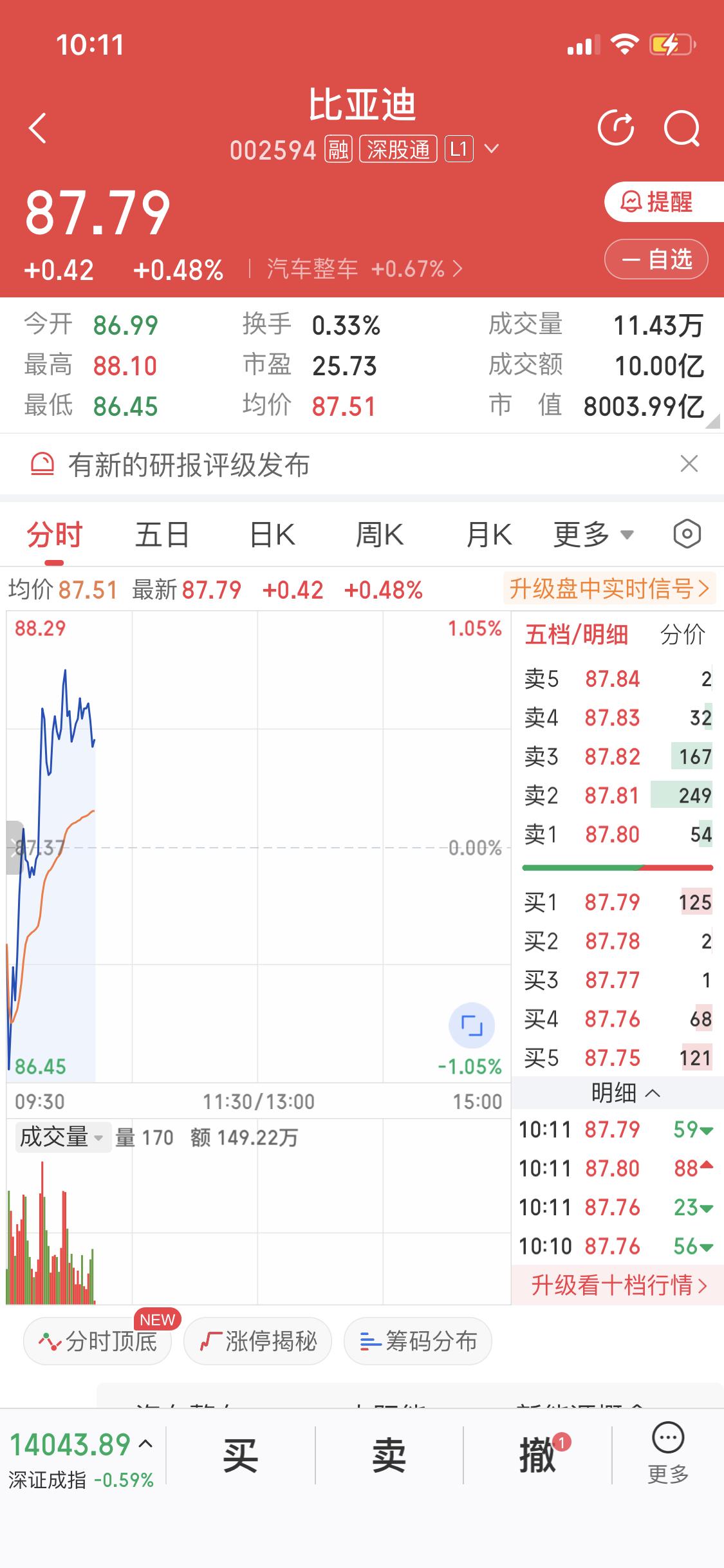 2月4日比亚迪股价翻红,真让人好奇是不是要止跌企稳了。2月3日收盘报87.37元,涨幅0.37%,成交额32.76亿元。从基本面看,2025年全年销量460.24万辆,同比增7.73%,海外销量104.96万辆,同比增145%,前三季度归母净利润大幅增长,基本面韧性足。 技术面上,股价在86 - 88元窄幅震荡,2月3日探底85.88元后回升,K线收小阳线,有短期止跌信号。不过均线空头排列,5日均线88.5元是压力位。接下来股价能否稳住,还得看量能修复、板块情绪、业绩兑现和行业景气度。