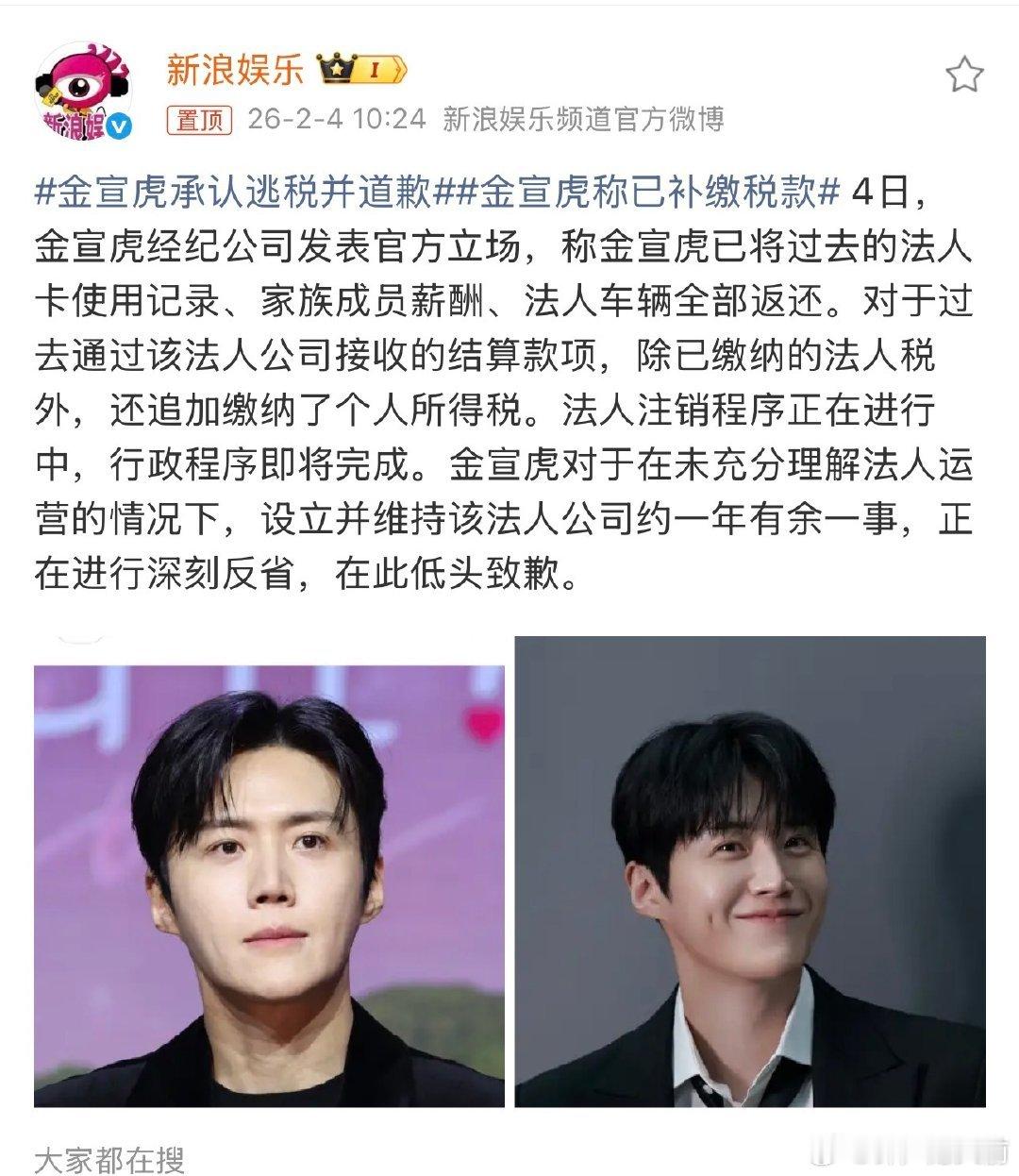 魅惑这剧真是命运多舛,我记得之前说是柳俊烈韩素希定情之作,柳甚至要给韩做挂件男二,现在又有金宣虎承认逃税并道歉
