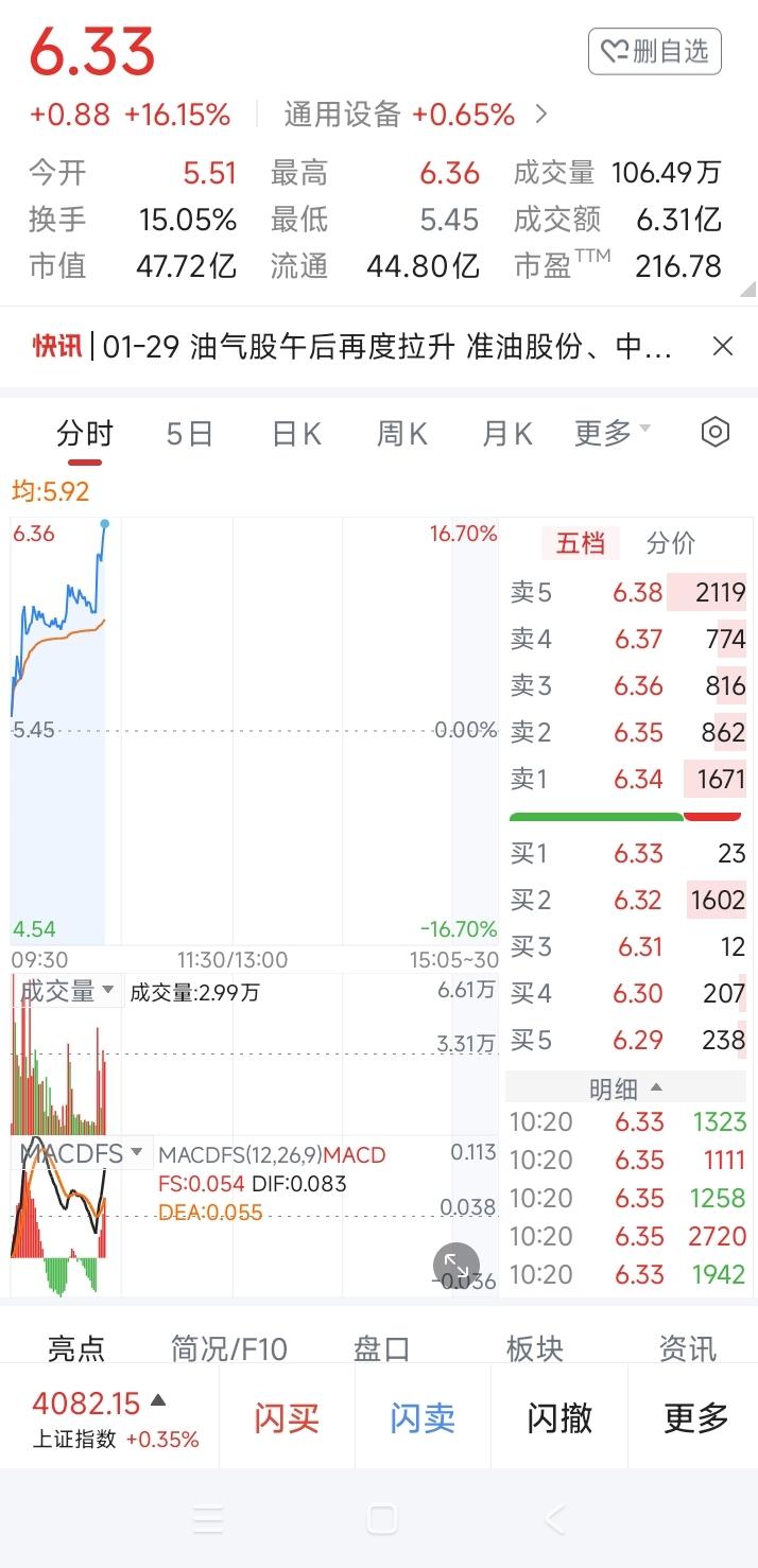 2号说,换了某新动力。那时是在5.34介入的。现在价位已在6.33元了。看来今日有望涨到20个点。