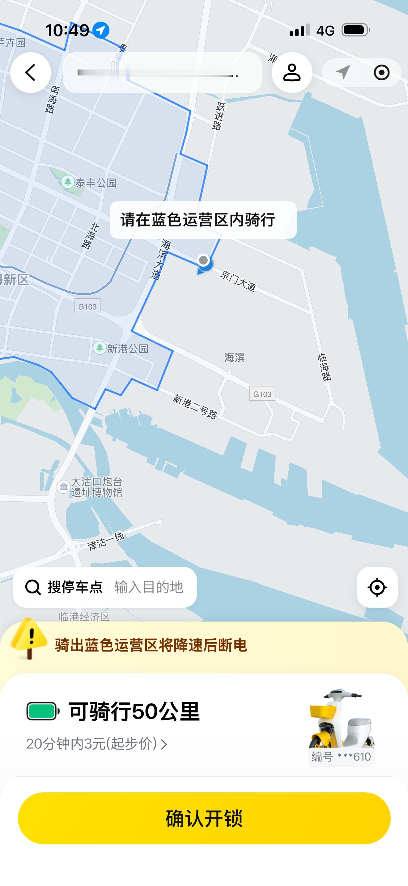 本来想骑一个小黄,结果发现有区域限制只能腿着去了 天津·中国天津自由贸易试验区