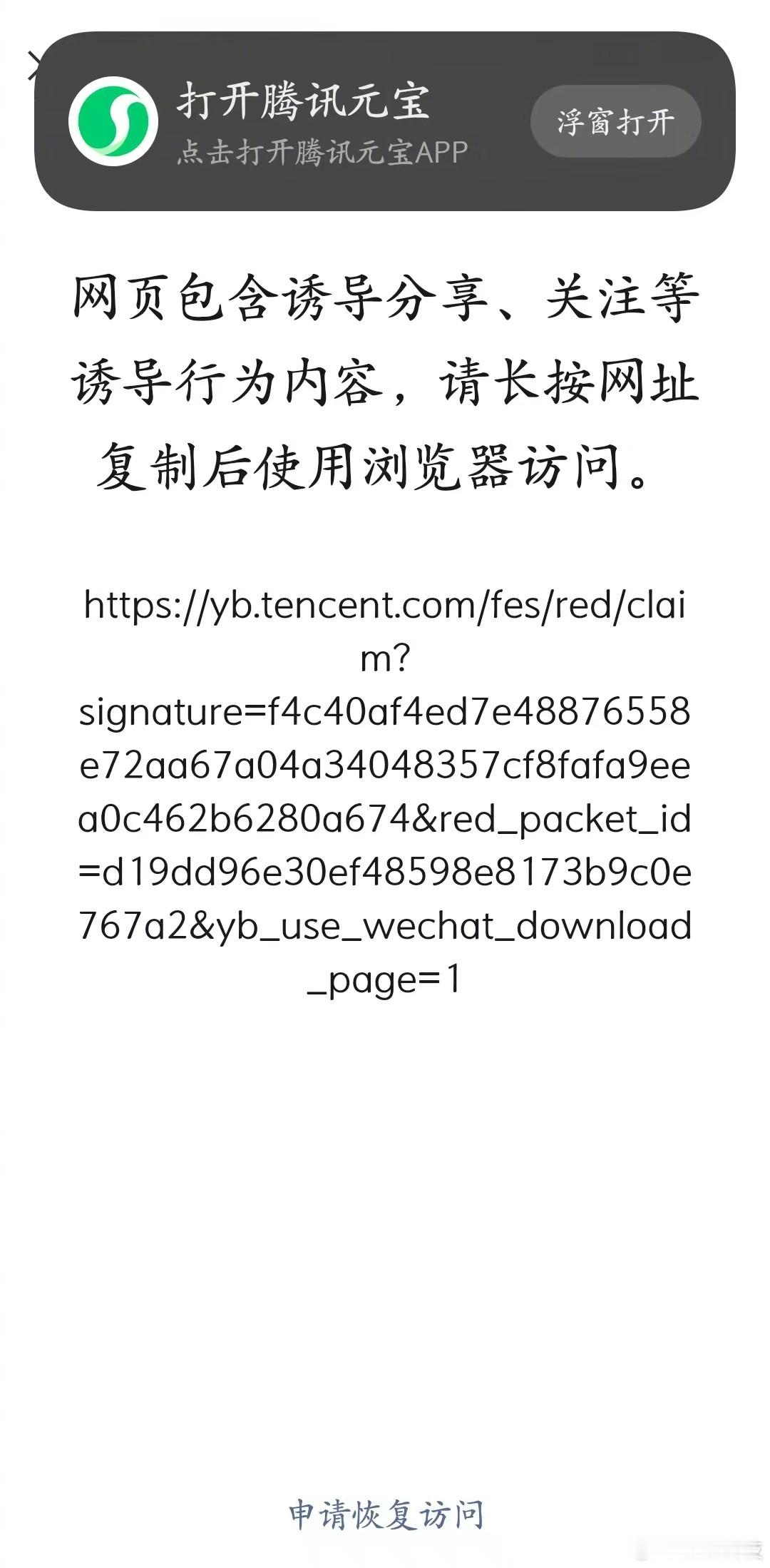 张小龙牛呀!微信把元宝红包给屏蔽了。
