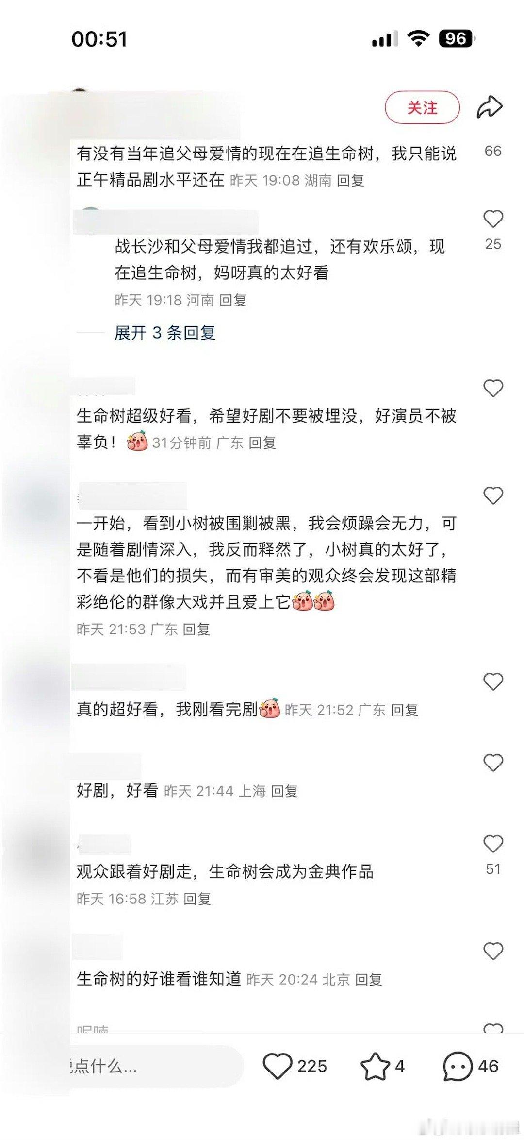 生命树剧粉开始发力了, 剧评好到网友连夜刷了8集《生命树》,最后观后感是:生命树取景节奏台词没有一处在糊弄!生命树一集比一集精彩